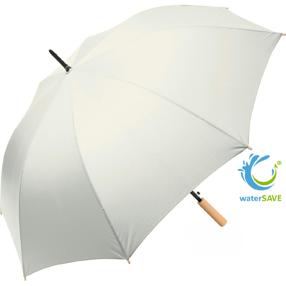Komfortable Automatik-Funktion zum schnellen Öffnen, hochwertiges Windproof-System für eine maximale Gestell-Flexibilität bei stärkeren Windböen, flexible Fiberglasschienen, wassersparend gefärbtes Polyester-Pongee waterSAVE® Bezugsmaterial aus recycelten Kunststoffen, mit waterSAVE®-Label auf dem Schließband, Echtholzspitzen, gerader Echtholzgriff mit Werbeanbringungsmöglichkeit, höherer Korrosionsschutz durch schwarze Galvanisierung des Stahlstocks