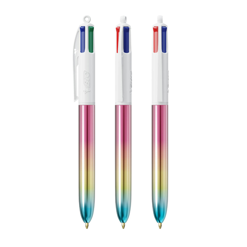Der einzigartige Metallic-Gradient-Effekt kombiniert 3 glänzende Farben auf dem Schaft, Er hat eine durchschnittliche Schreiblänge von 8.000 m (SGS-Tests - durchschnittliche Schreiblänge für blaue, schwarze, rote und grüne Tinte). Jetzt mit 13 % weniger Kunststoff im oberen Teil! Neu: jetzt auch Kappe gegenüber des Clips bedruckbar (Kappe immer weiß!). Preis inkl. 1-farbigem Druck und Drucknebenkosten.