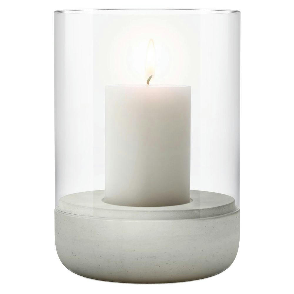 Material: Beton, Glas klar. Farbe: Beton. Maße:Ø 15 cm, Höhe 22,5 cm.