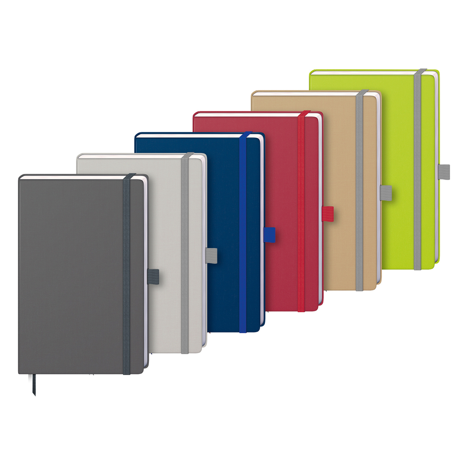 Set-Kombination aus einem Notizbuch & Kugelschreiber & Veredelung zum Komplettpreis. Im Format A5. Ausstattung in havanna, gelbgrün, kalkgrau, graphit, karminrot, royal-blau kombiniert mit einem Schreibgerät Metallic Matt oder Soft Touch in passender Farb