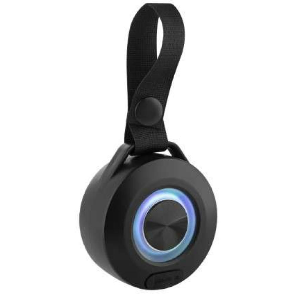 Handliche 5 Watt Maxi Soundmaschine für Outdooreinsätze & spontane Partys, satter Sound & Bass – mit Party-Light - und praktischer Trageschlaufe. Integrierter Akku (400mAh) für bis zu 4-6h Autonomie. Ladekabel inklusive.