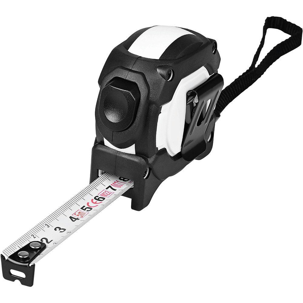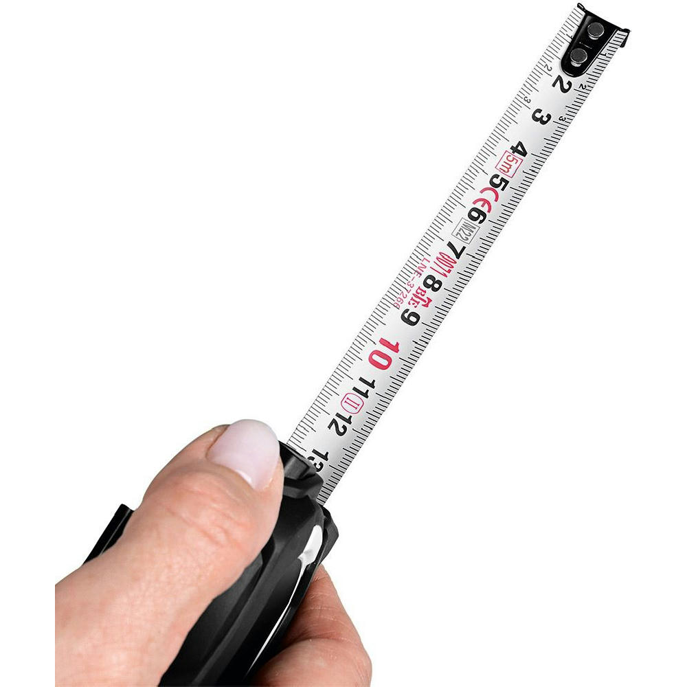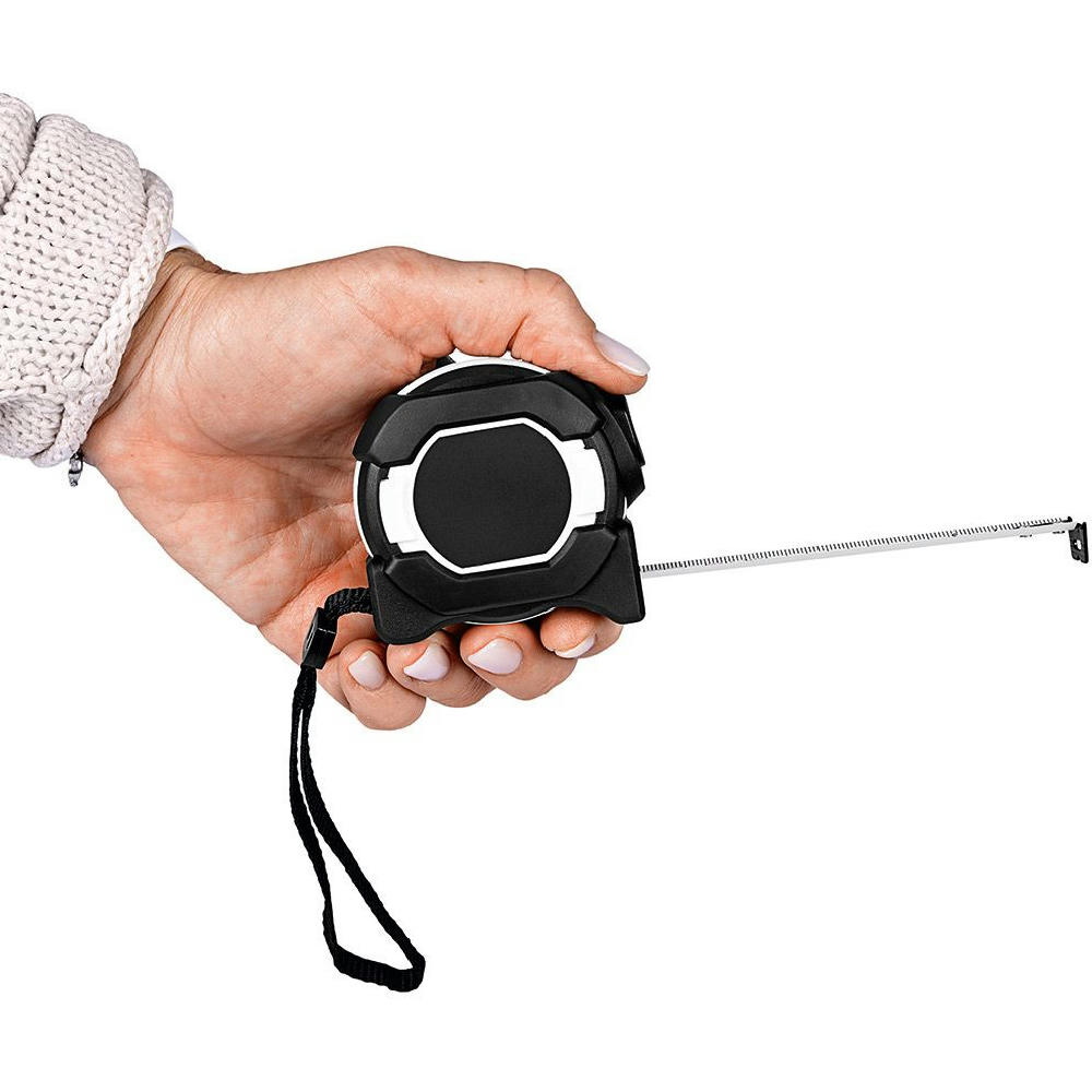Stabiles und robustes Qualitäts-Bandmaß aus schlagfestem 2-Komponenten-Gehäuse. Durch die Aussparung im Haken kann das Stahlband in einen Nagel oder eine Schraube eingehängt werden. Knickfestigkeit: 1,80 m. Skalierung: cm, einseitig. Genauigkeitsklasse: EG-Klasse II. Ausstattung: dynamischer Bandrücklauf, beweglicher Bandanfangshaken, Gürtelclip und Handschlaufe. Verpackung: schwarze Geschenkverpackung.