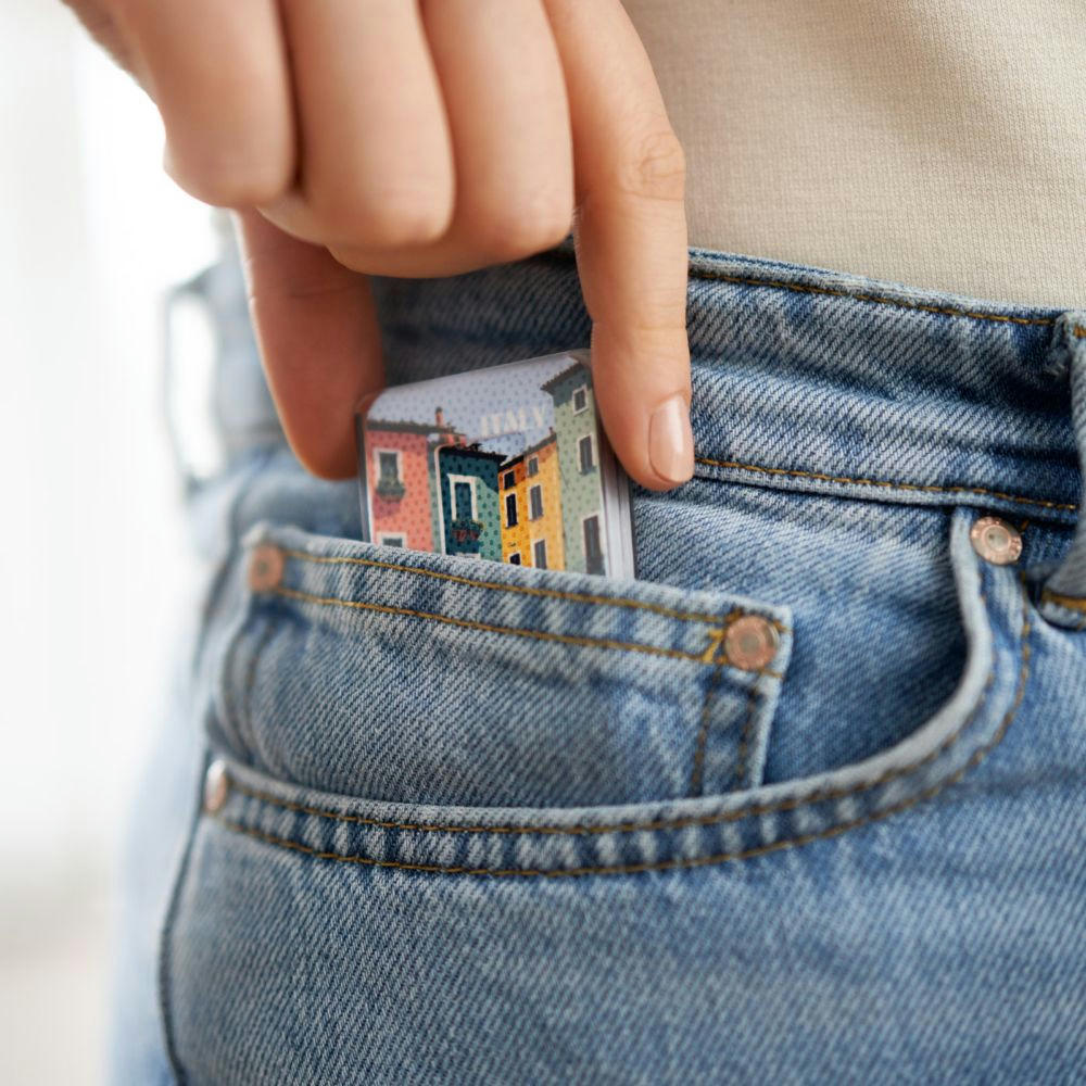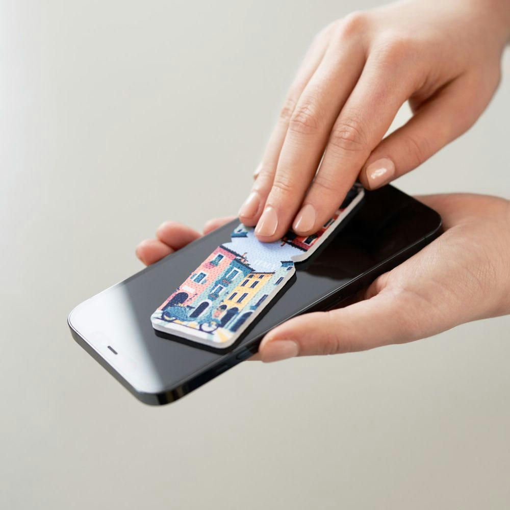 Die verarbeitete P-9000® Microfaser entfernt Fingerabdrücke und Schlieren äußerst effektiv. Feine Grip-Dots auf der Außenseite verhindern das Verrutschen der Finger. Der PocketCleaner® wird im kompakten Case inkl. individuellem, mehrfarbigen HD-Werbeaufdruck geliefert. Made in Germany. Preis inkl. 4/0 Druck sowie inkl. Druckvorlauf- und Versandkosten an eine Adresse in Deutschland auf dem Festland.