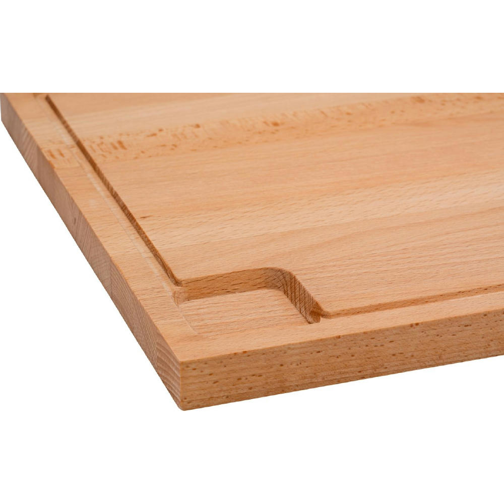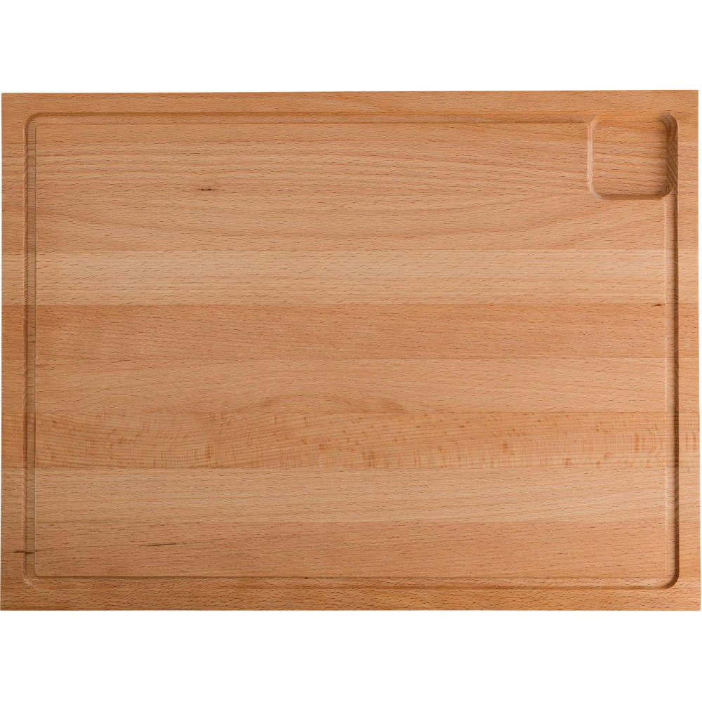 Großes Schneidebrett mit Saftrinne und -mulde aus geöltem Buchenholz. Gewicht: ca. 1700 g. Hergestellt in Europa.