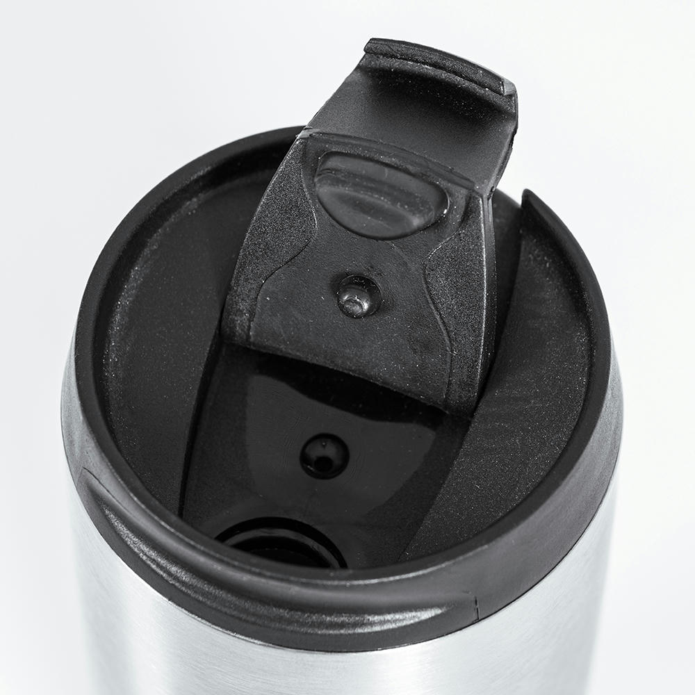 Der doppelwandige Thermobecher aus Edelstahl (380 ml) mit dem BPA-freien Kunststoff Klemmverschluss, hält die Flüssigkeiten im Inneren lange konstant.