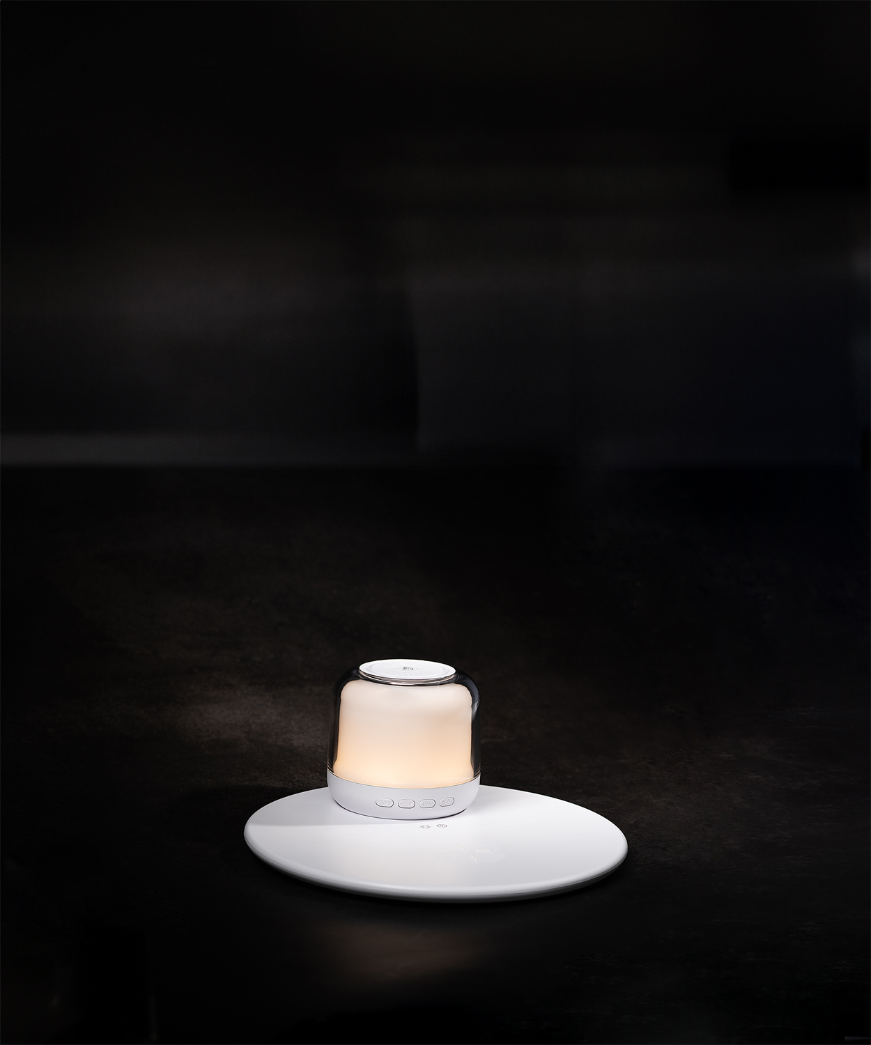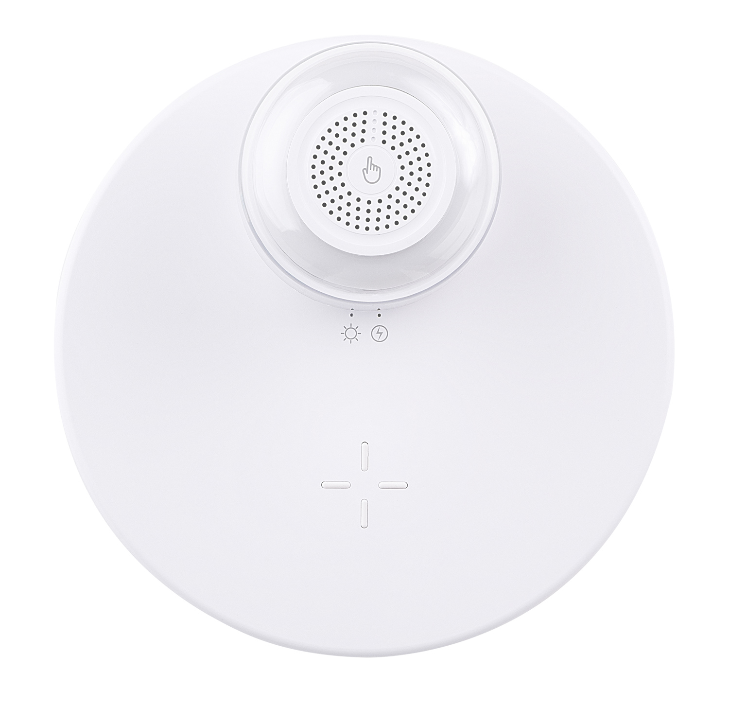 Entspannung pur: freut die Augen, streichelt die Ohren und versorgt Ihr Mobiltelefon diskret mit Energie.Wireless Charger Output: DC 5V-1A / 9V-1.66A / 12V-1.25A. Nennleistung des Nachtlichts: 1.2W (6 x 0.2W LED- Module plus 6 x 0.2W RGB-Module). Batteriekapazität: 600 mAh, 3.7V (2.22Wh).