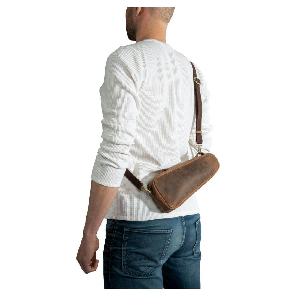 Abnehmbar, mit RV, mit drei abnehmbaren Schlaufen, einem langen abnehm- und verstellbarem Riemen, innen: 1 Steckfach