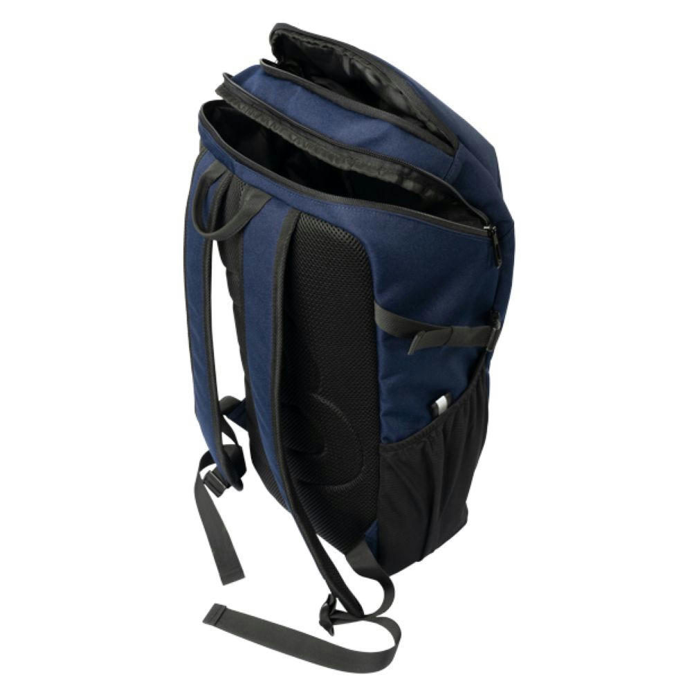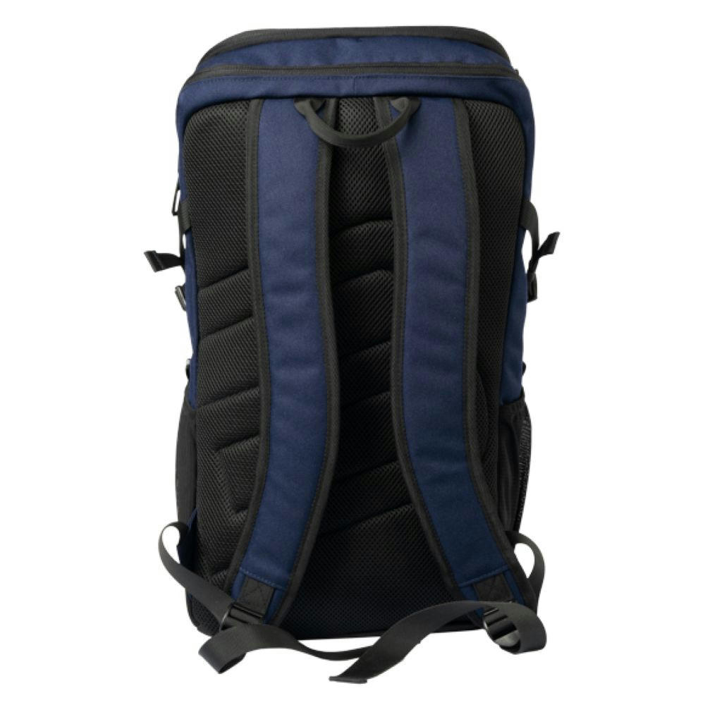 Mit schwarzen Accessoires, gummierter RV an Fronttasche, seitlich je elastisches Mesh mit Reflektordetail und verstellbarem Gurt, verstärkter Boden, oben zusätzliches RV Fach, gepolsterter Rücken und Träger, zusätzlicher Tragegriff, Innen: gepolstertes Laptop Fach, 2 Steckfächer.