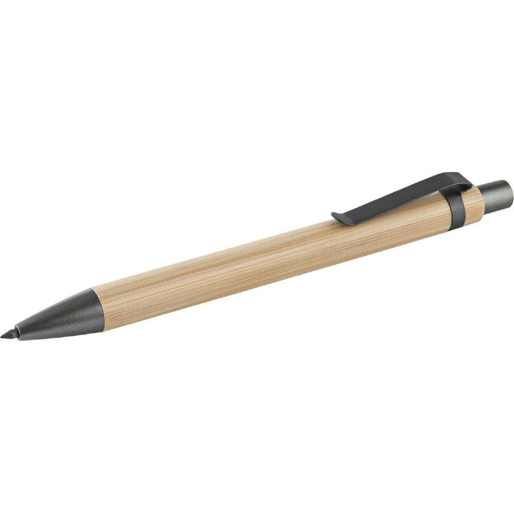 Die Revolution des Schreibens! Aus natürlichem Bambus & edlen gunmetall Metallapplikationen mit einer Schreibkapazität von ca. 100 konventionellen Bleistiften, praktisches Einklicken der Spitze, komfortables Schreiben, Scribbeln, Zeichnen. Extra Effekt: normale Kugelschreibermine einsetzbar zum endlosen Weiterverwenden, im Designkarton.