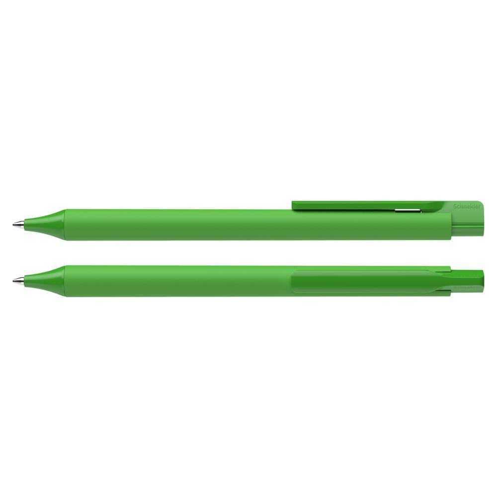 Druckkugelschreiber aus opakem Kunststoff. Oberteil mit mattierter Soft-Touch-Lackierung, Cliphülse und Spitze mit glänzender Oberfläche. Ausgestattet mit Schneider-Mine 774 M. Produkt mit finanziellem Klimabeitrag: Kompensation in Höhe der unvermeidbaren Emissionen in ein zertifiziertes Klimaschutzprojekt. Gehäuse: gelb. Schreibfarbe: blau.