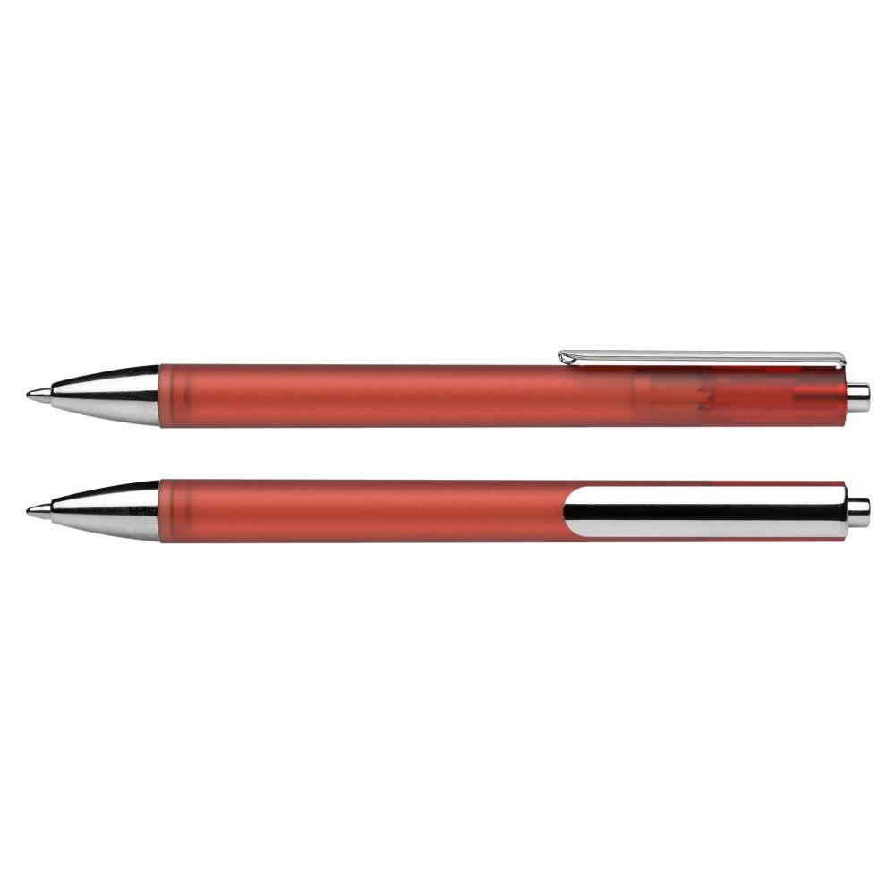 Druckkugelschreiber aus transparentem oder opakem Kunststoff. Oberteil mit mattierter Soft-Touch-Lackierung. Gehäusespitze, Clip und Druckknopf aus Metall. Ausgestattet mit Schneider-Mine 774 M. Produkt mit finanziellem Klimabeitrag: Kompensation in Höhe der unvermeidbaren Emissionen in ein zertifiziertes Klimaschutzprojekt. Gehäuse: rot-transparent. Schreibfarbe: blau.
