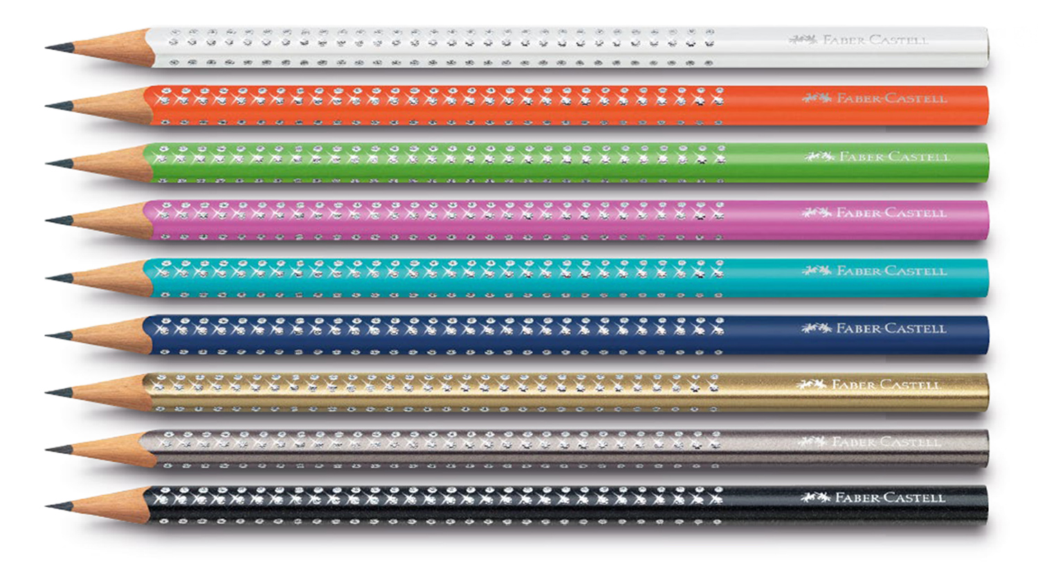 4 Bleistifte mit Glitzereffekt nach Wahl im Blechetui. Material: Metall, Holz. Farben saisonal wechselnd. Maße: 18,3 x 5,4 x 1,1 cm (Etui).