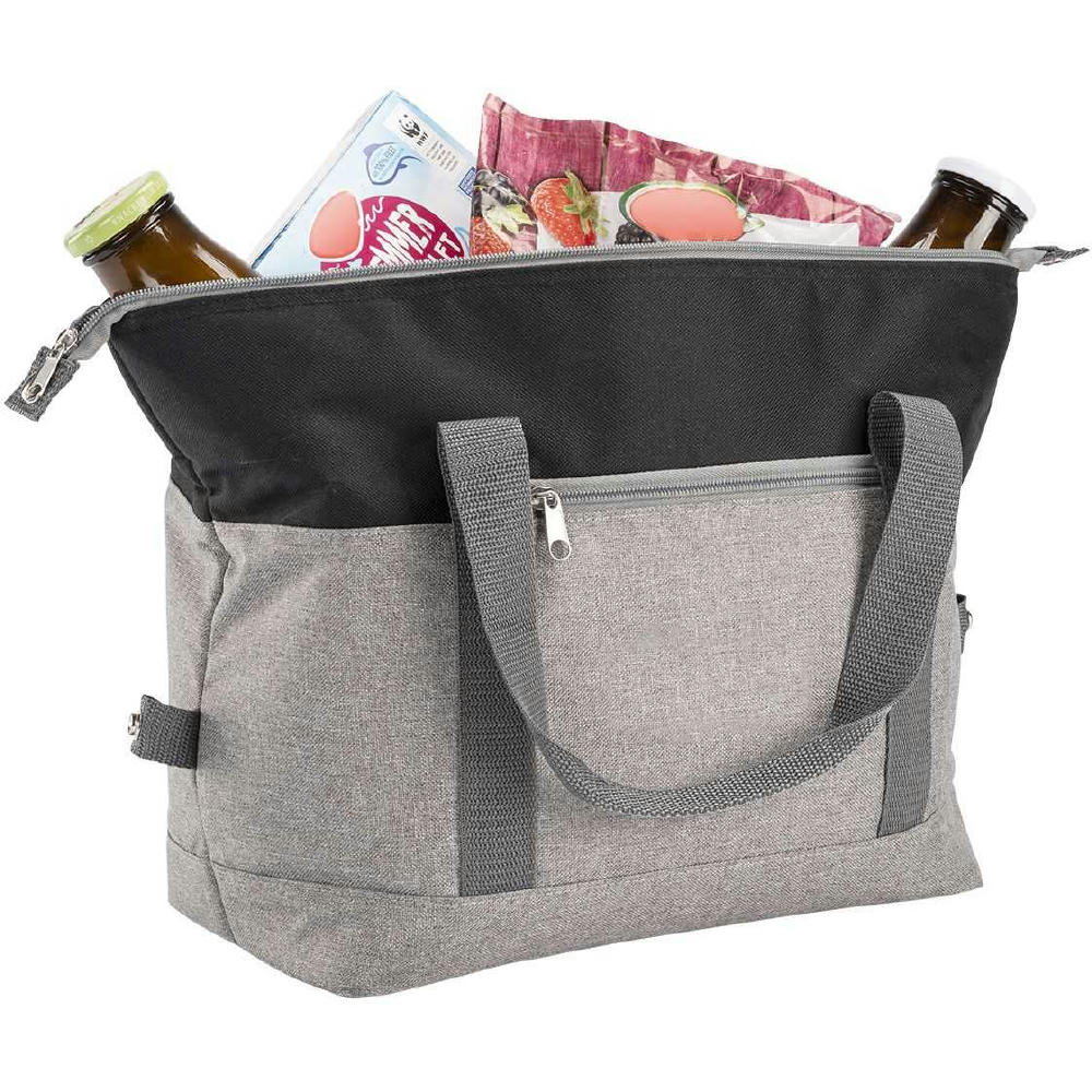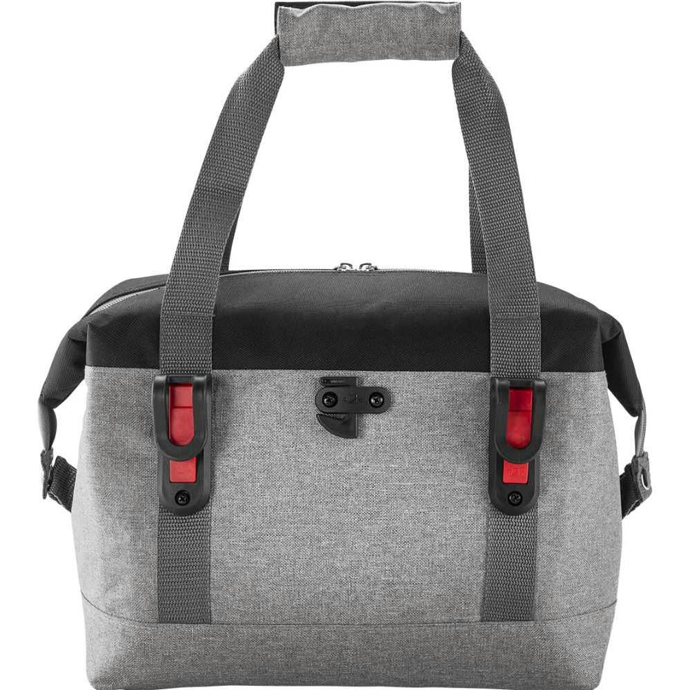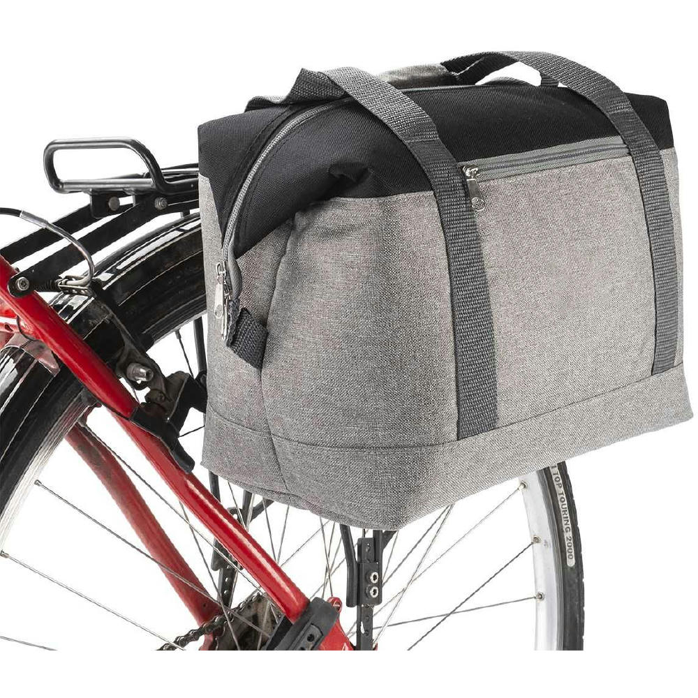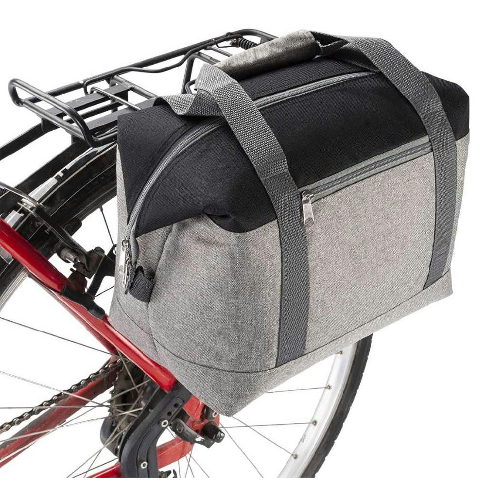 2-Wege Reißverschlusshauptfach Reißverschlussvortasche Druckknöpfe links+rechts seitlich gepolsterter Tragegriff Kühlfunktion aus PEVA Rückseite mit Vario Top Haken von Rixen & Kaul zur Befestigung an einem Gepäckträger Volumen: ca. 13 L.