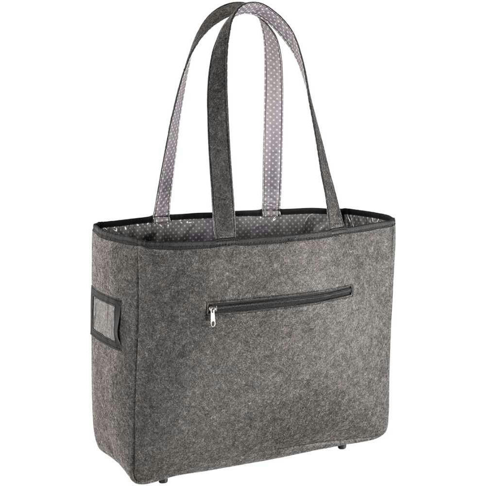 offenes großes Hauptfach, Reißverschlussvortasche, Innenbereich abwaschbar, seitlich mit Namensfach, Boden mit 4 PVC Füßen versehen, Volumen: 22l.