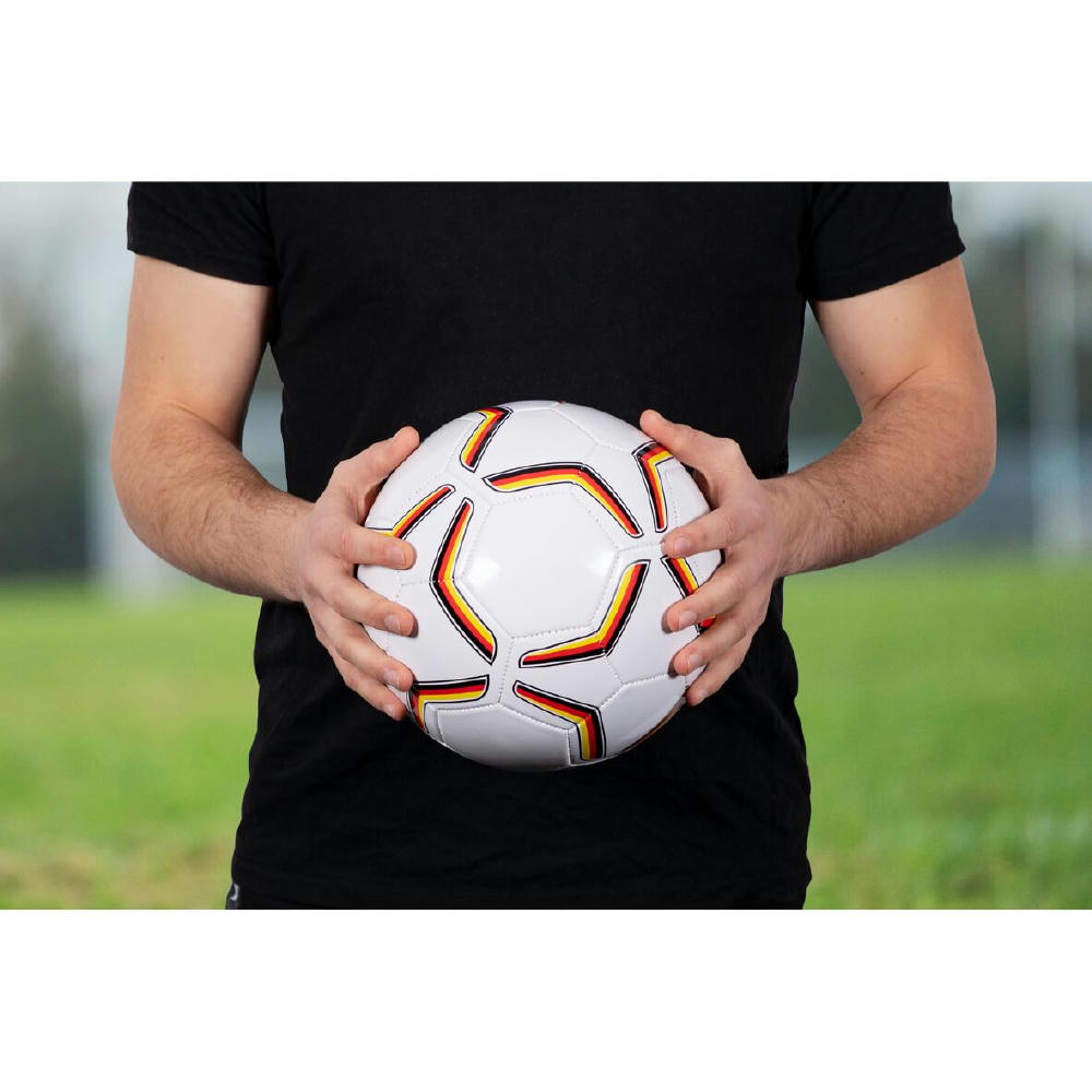 Der Fußball "Germany" in Größe 5 besticht durch sein sportliches Design in den Farben Weiß, Schwarz, Rot und Gelb – ideal für Fans. Gefertigt aus 1,6 mm starkem PVC, ist er maschinell genäht und bietet optimale Haltbarkeit. Ausgestattet mit einem robusten Butyl-Ventil und einer Latexblase, sorgt er für hervorragenden Luftdruck und langlebige Spielfreude. Perfekt für alle, die Spaß am Spiel haben!
