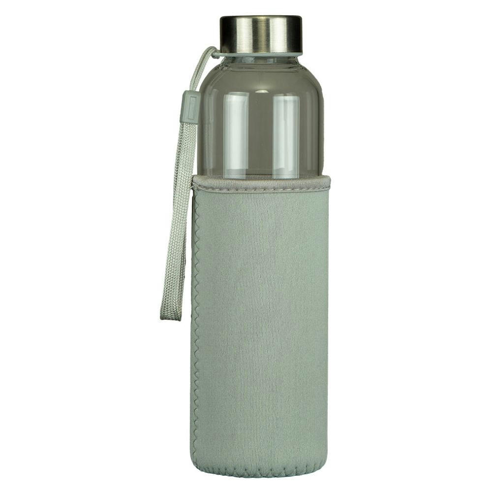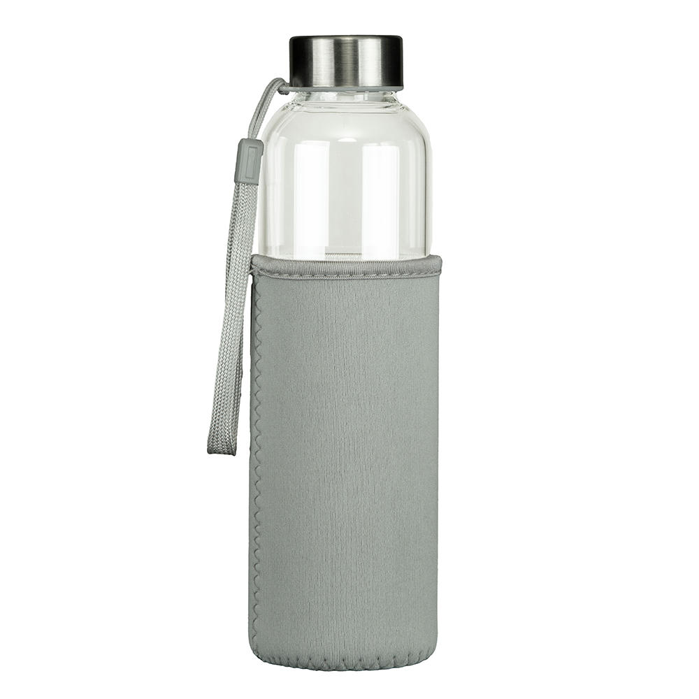 Trinkflasche aus stabilem Borosilikat-Glas mit Edelstahl Schraubverschluss und Silikondichtung. Mit passender Neoprenhülle, welche die Temperatur konstant hält.Die Flasche ist spülmaschinengeeignet und kohlensäuretauglich.