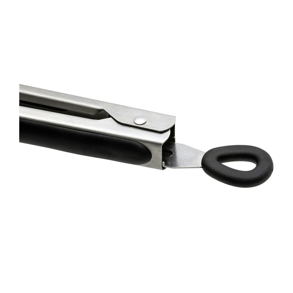 Edelstahl-Grillzange kann über Ziehen der Schlaufe am Kopf verriegelt oder geöffnet werden.