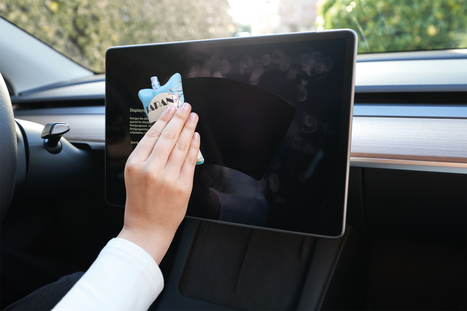 Vereint zwei Funktionen in einem Tool: Sprühen, wischen — und sauber ist das Display, ob im Büro oder im Auto . Frei von chemischen Reinigungsmitteln, Alkohol sowie Ammoniak. Die Kombination aus P-9000® Microfaser sowie vorzugsweise destilliertem Wasser, entfernt Fingerabdrücke rückstandslos und sorgt für schlierenfreie Displays. Nachfüllbar. Verpackt in einer Papierbanderole mit individuellem 4/0 Druck. Made in Germany. Preis inkl. vollflächigem 4/0 Druck, inkl. Einzelverpackung, inkl. Druckvorlaufkosten und inkl. Versandkosten an eine Adresse in Deutschland auf dem Festland.