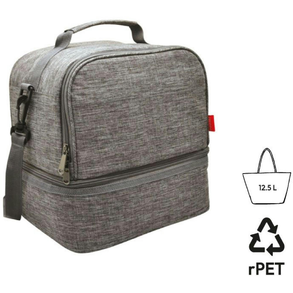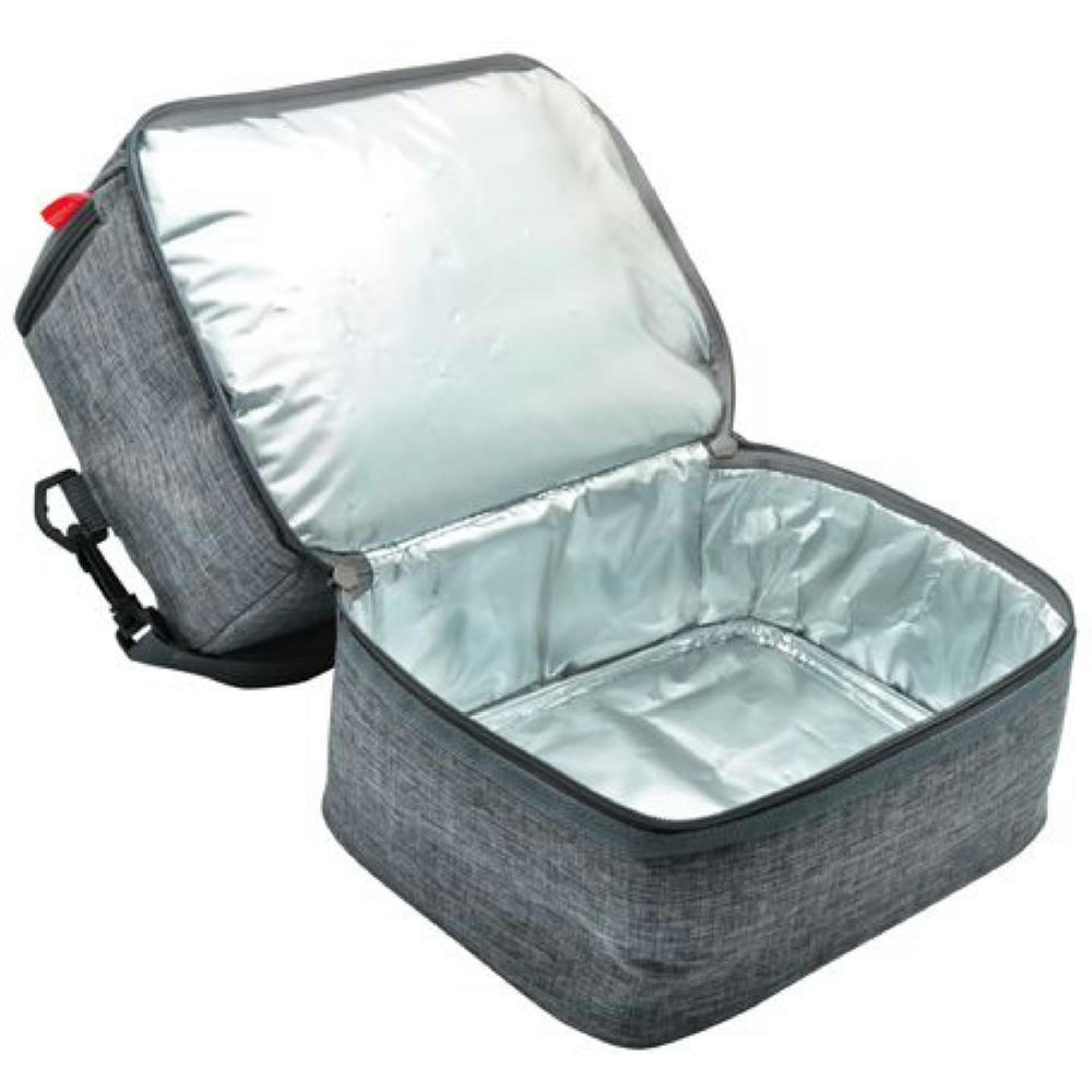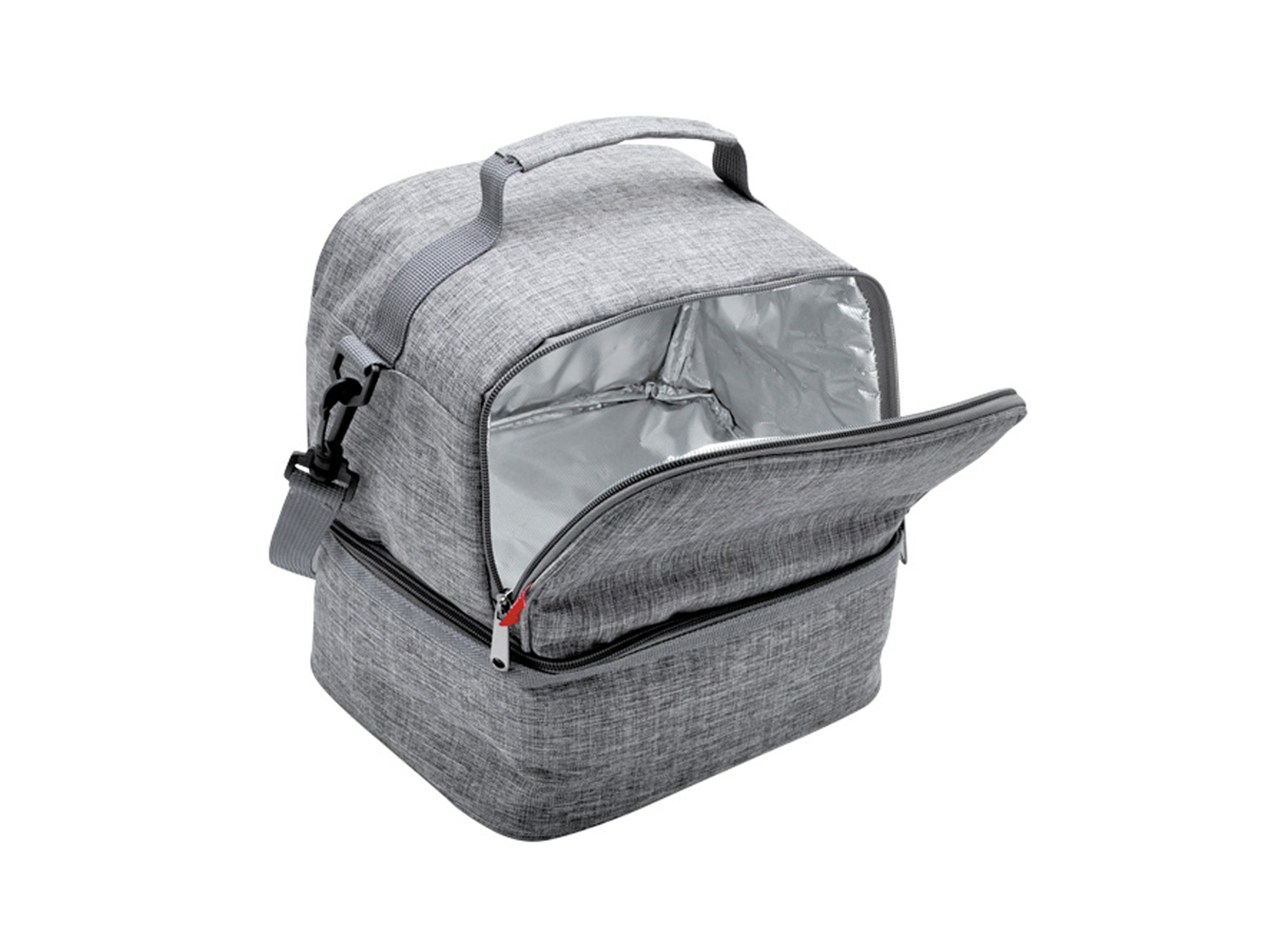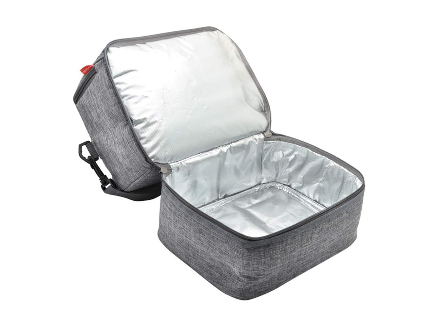 Thermotasche mit doppeltem Fach, isolierende 3 mm dicke Auskleidung, Schultergurt, Möglichkeit eine Visitenkarte einzufügen, verstärkte und gepolsterte Griffe für einen besseren Halt, Reißverschluss.