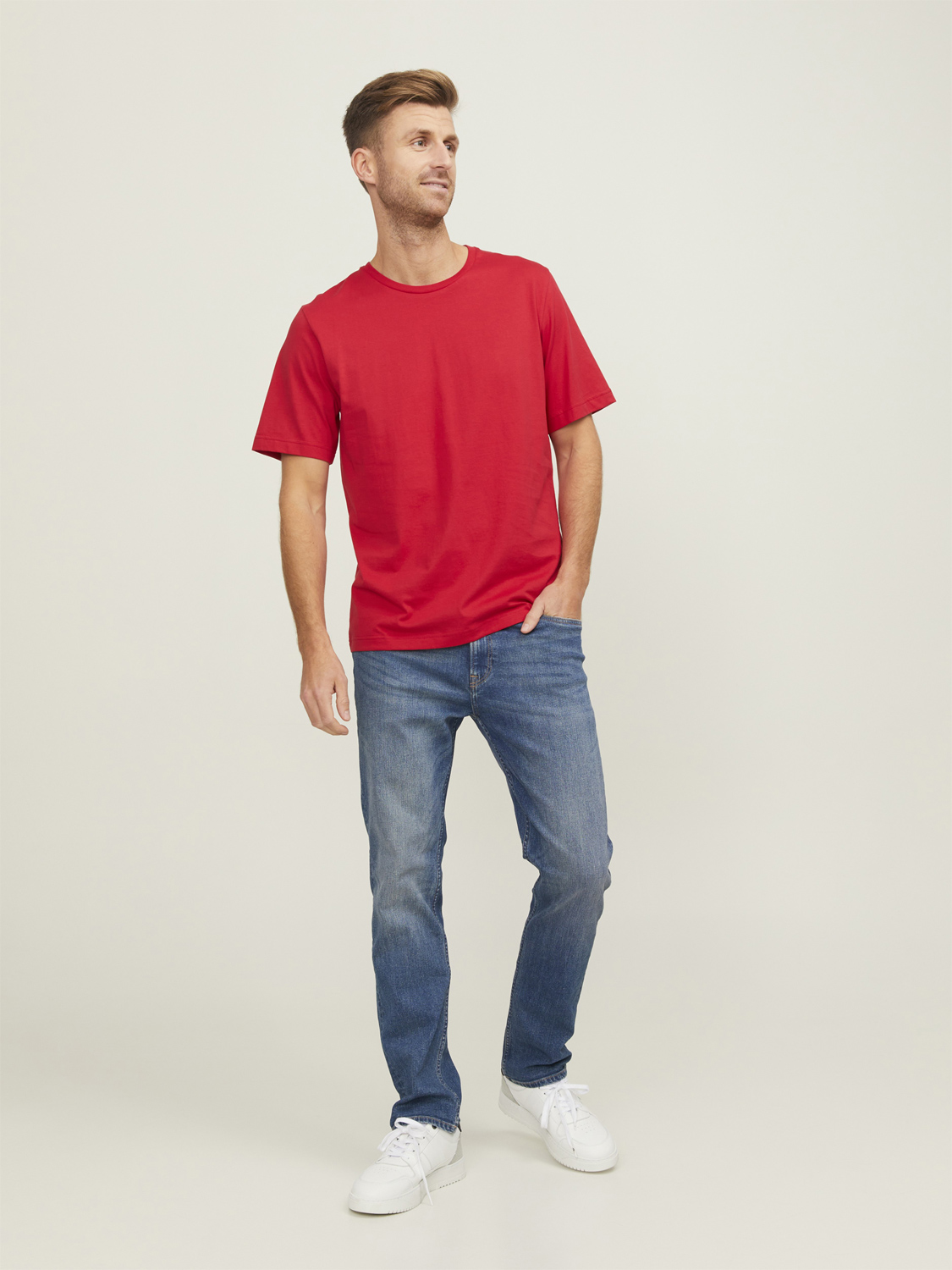 Klassischer Schnitt, Rundhalsausschnitt, Nackenband, Doppelnähte an Ärmel und Saum, weicher Griff.