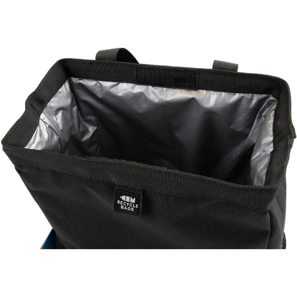 Eine multifunktionelle Tasche für unterwegs! Superpraktisch als Kühltasche im Auto, zum Befestigen an der Sitzlehne. Der Schnappverschluss macht es einfach, sie in den Park, an den Strand oder auf eine Party mitzunehmen. Die Innenseite ist wasserdicht und leicht zu reinigen.Der Stoff, das gewebte Band und das Netz werden aus insgesamt 10 recycelten Plastikflaschen hergestellt.