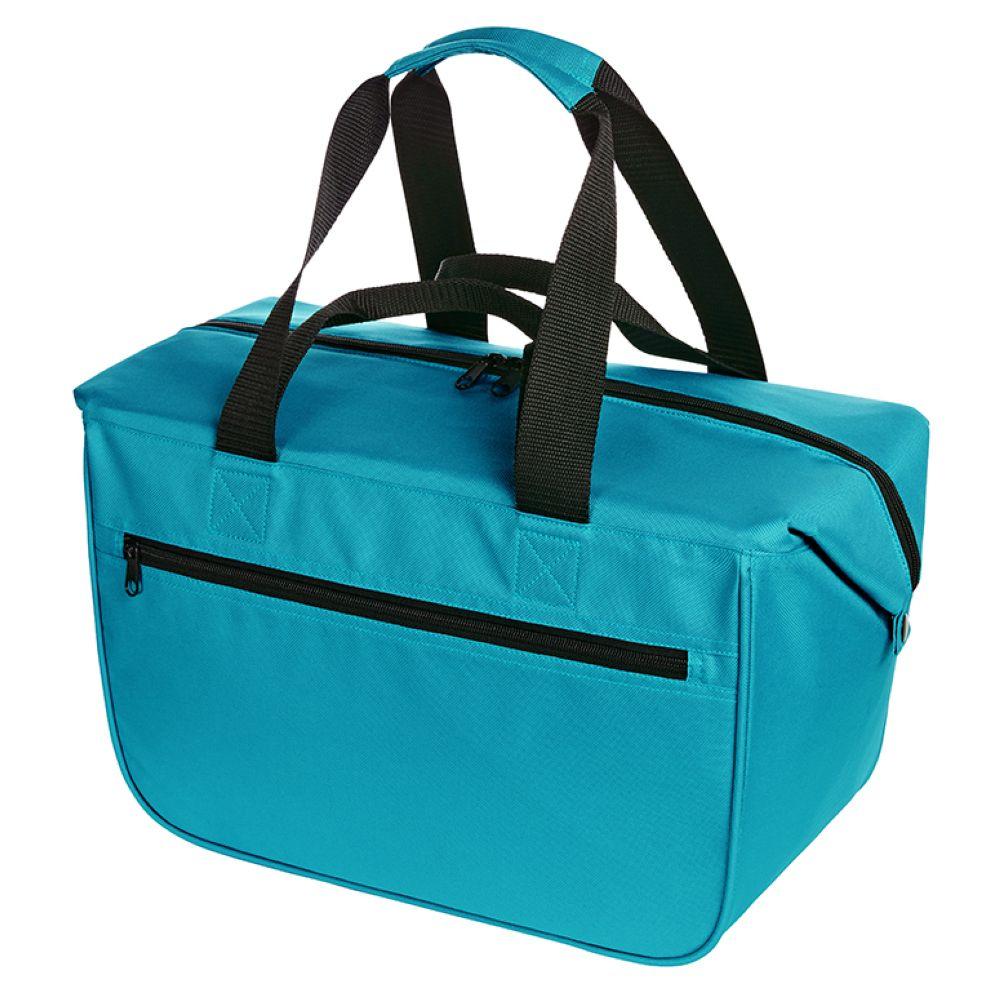 innovativer flexibler Kühlkorb; großes 2-Wege-Reißverschluss-Hauptfach; Volumenerweiterung über seitliche Druckknopflaschen; Reißverschluss-Vortasche; innen abwaschbar; Tragesystem mit Doppelgriffen und gepolsterte Griffmanschette für besten Tragekomfort; faltbar.