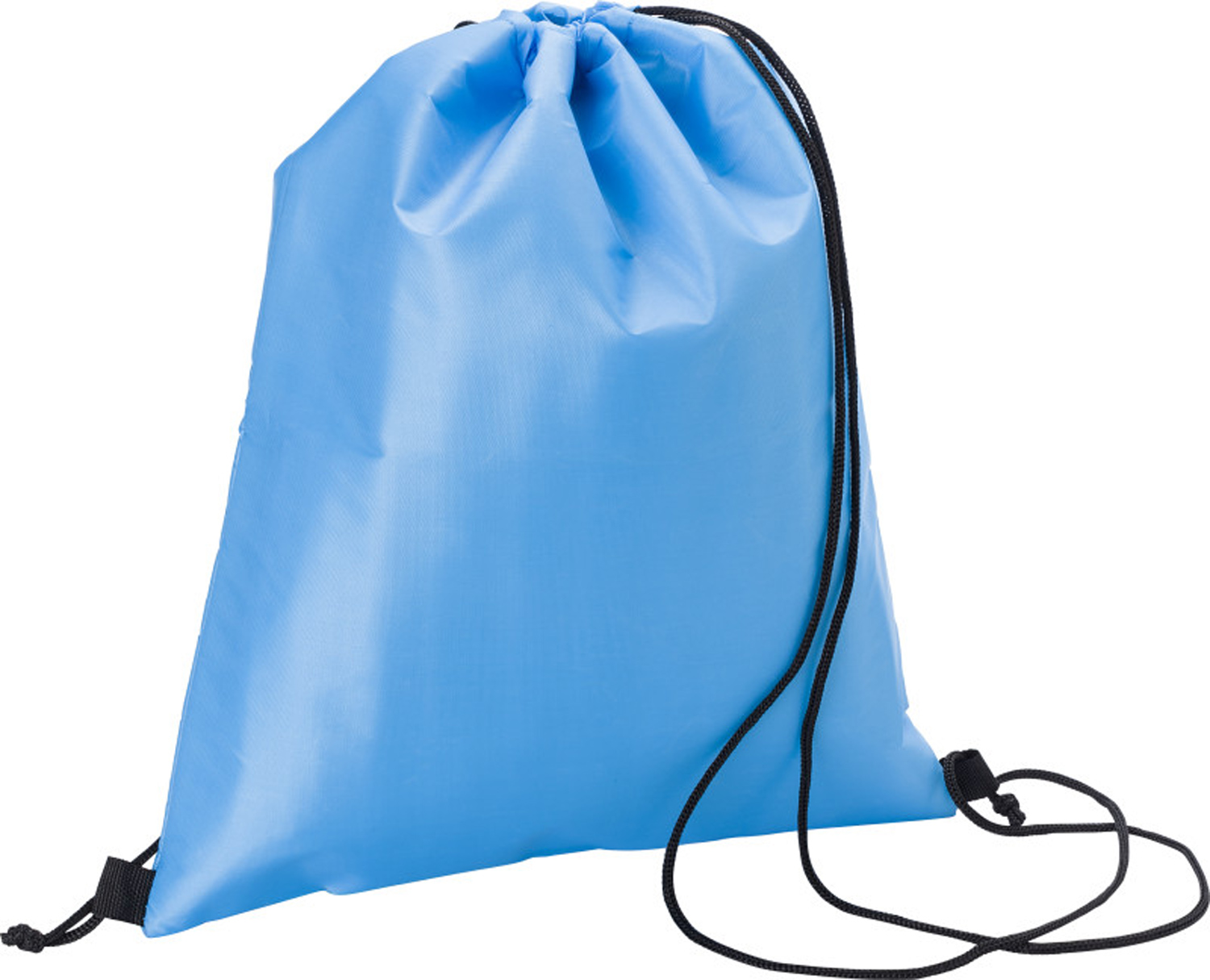 mit der Kühltasche in Turnbeutelform aus Polyester (210D) mit Aluminiumfolie auf der Innenseite und doppeltem Kordelzug, welcher als Schultergurte einsetzbar ist.