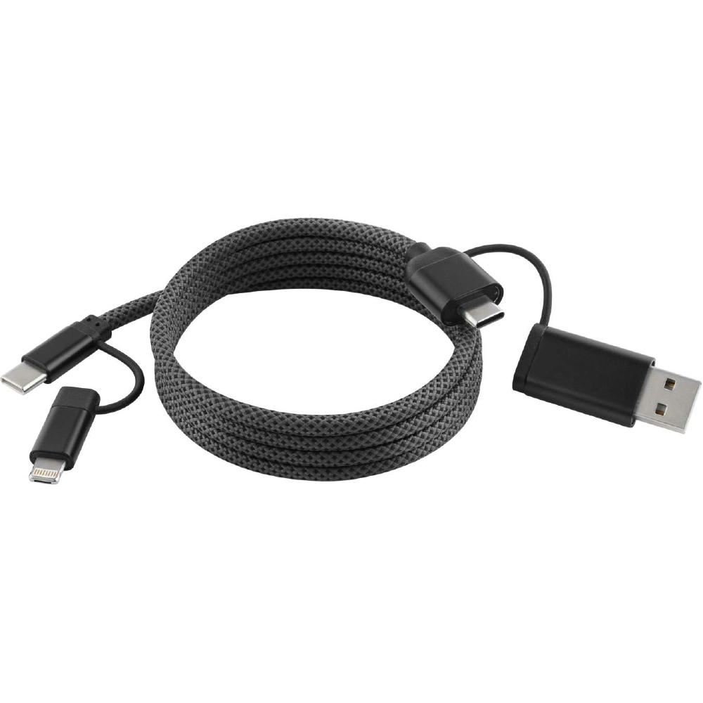 Turbo Ladekabel mit 65 Watt Power für alle Geräte – egal ob Smartphone, Tablet oder Laptop. Universelle Einsatzmöglichkeiten dank der innovativen Multiconnect-Technologie (Input: USB-A/USB-C, Output: Lightning®, USB-Micro, USB-C). Auch nutzbar für schnellen und sicheren Datentransfer. Kabellänge: 100cm, magnetische Kabelorganisation. Umweltfreundliche Craft Paper Box.