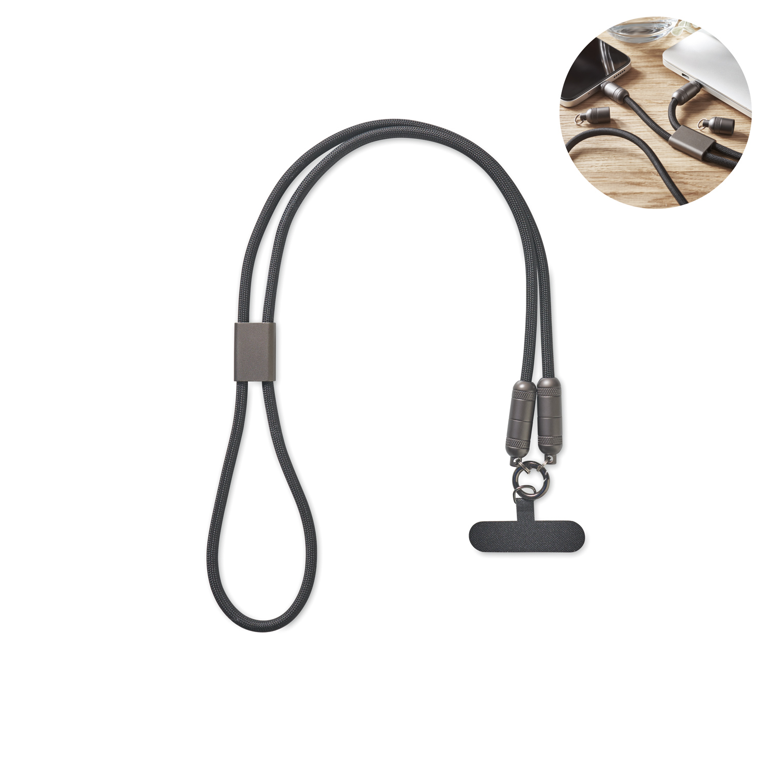 60W Lanyard-Datenübertragungs- und Ladekabel. Typ-C auf Typ-C in rPET mit Universal-Halter.