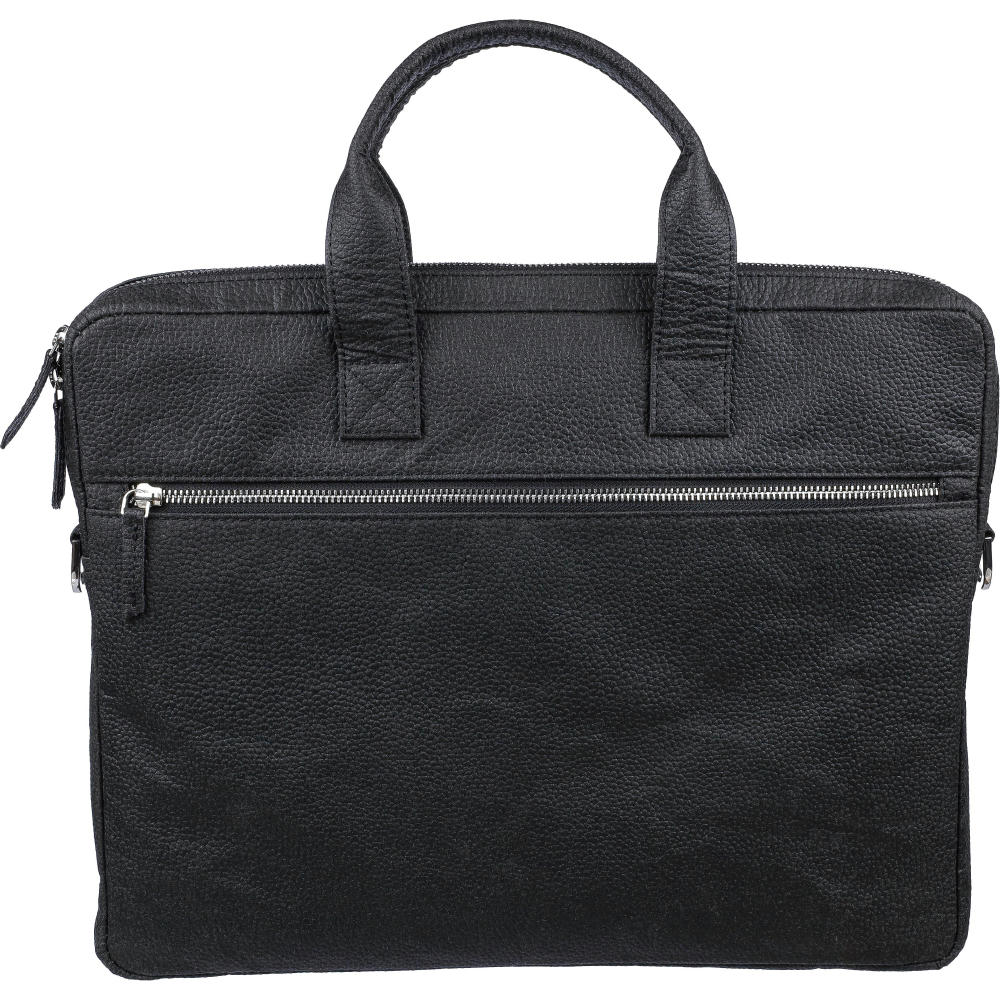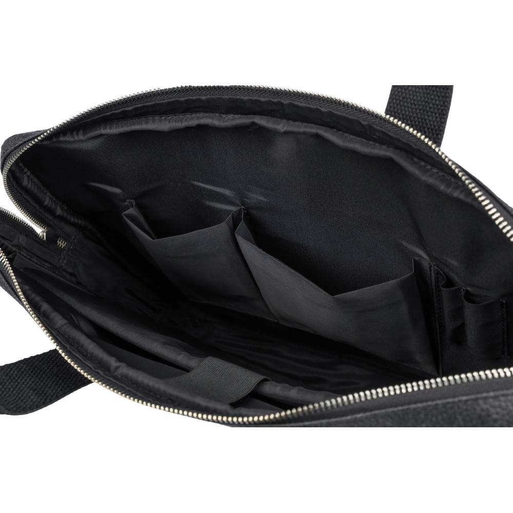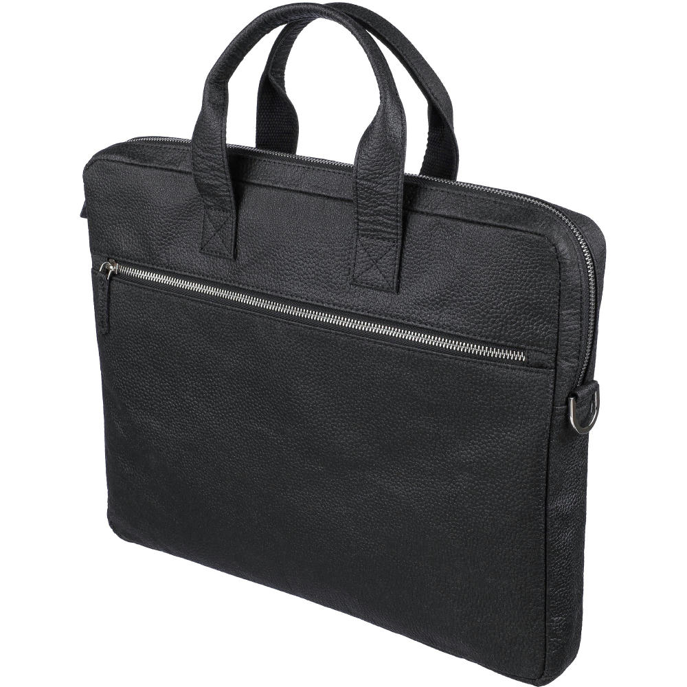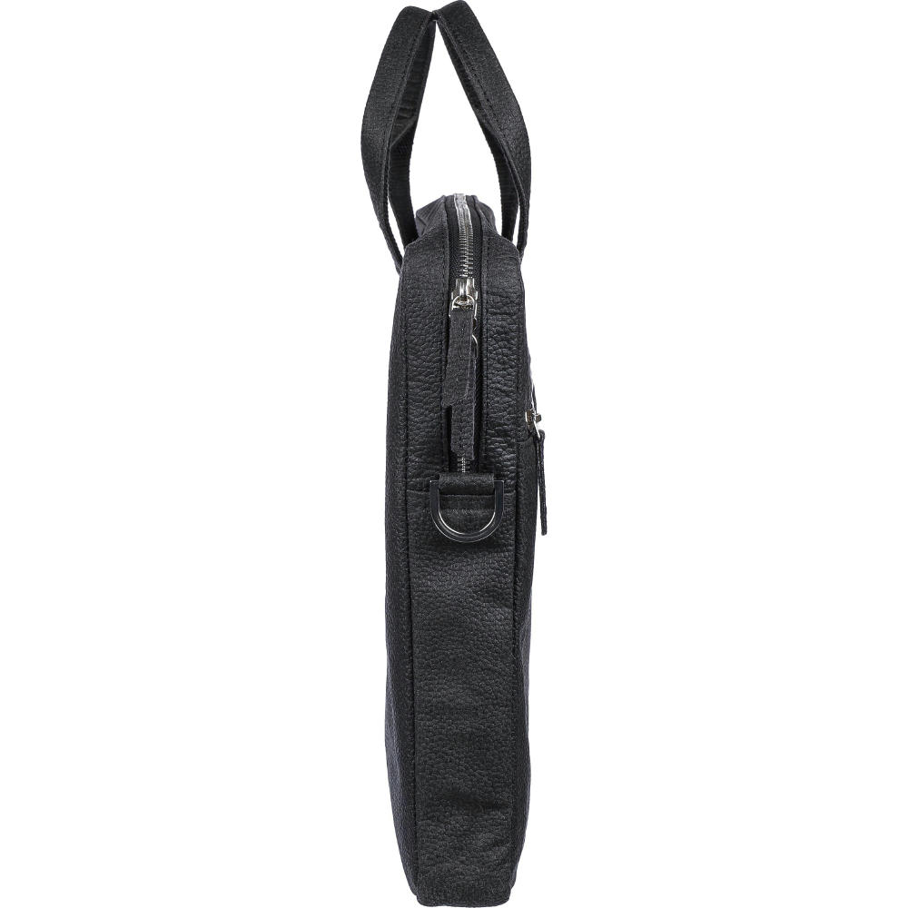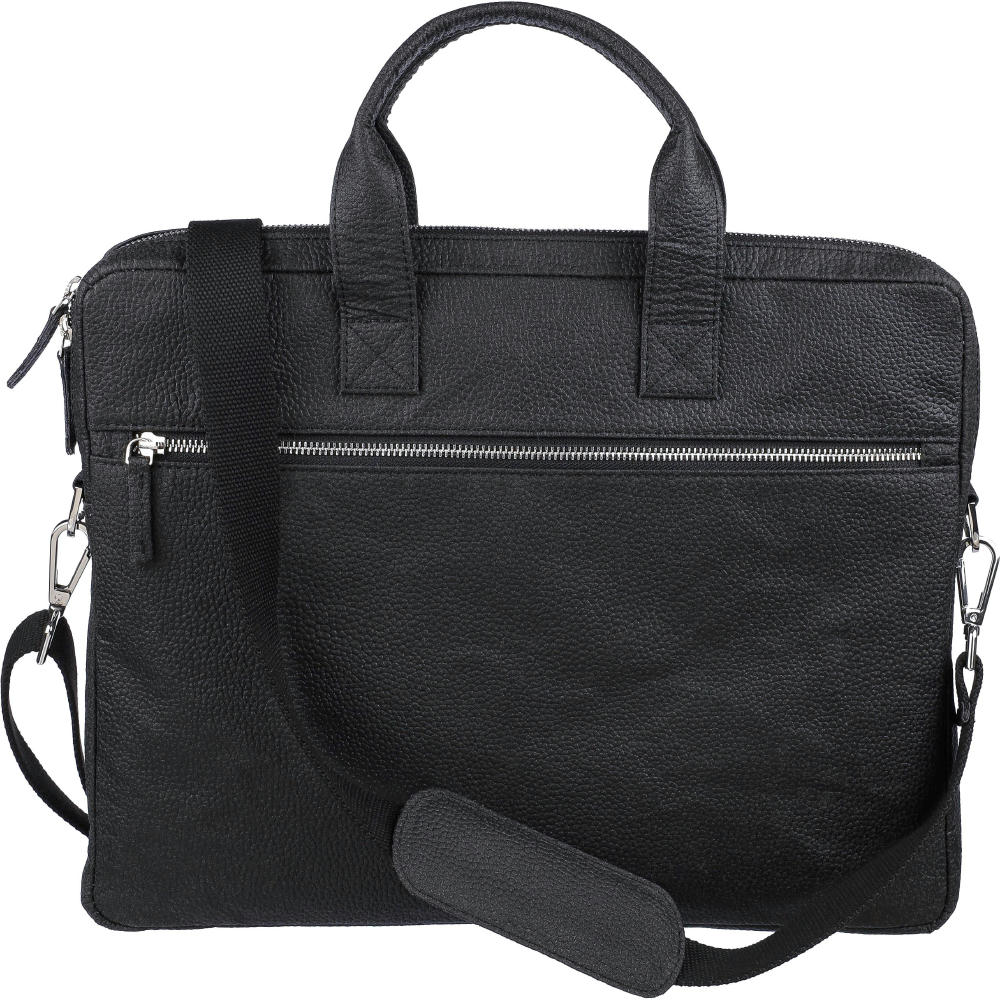 Laptoptasche aus Tomatenleder (15 Zoll) mit Reißverschlussfächern auf der Vorder- und Oberseite und einem gepolsterten Laptopfach mit Klettverschluss. Mehrere kleine Innentaschen. Mit verstellbaren Schulterriemen. Materialzusammensetzung: 50% Baumwolle, 30% Tomate, 20% Biopolymer.