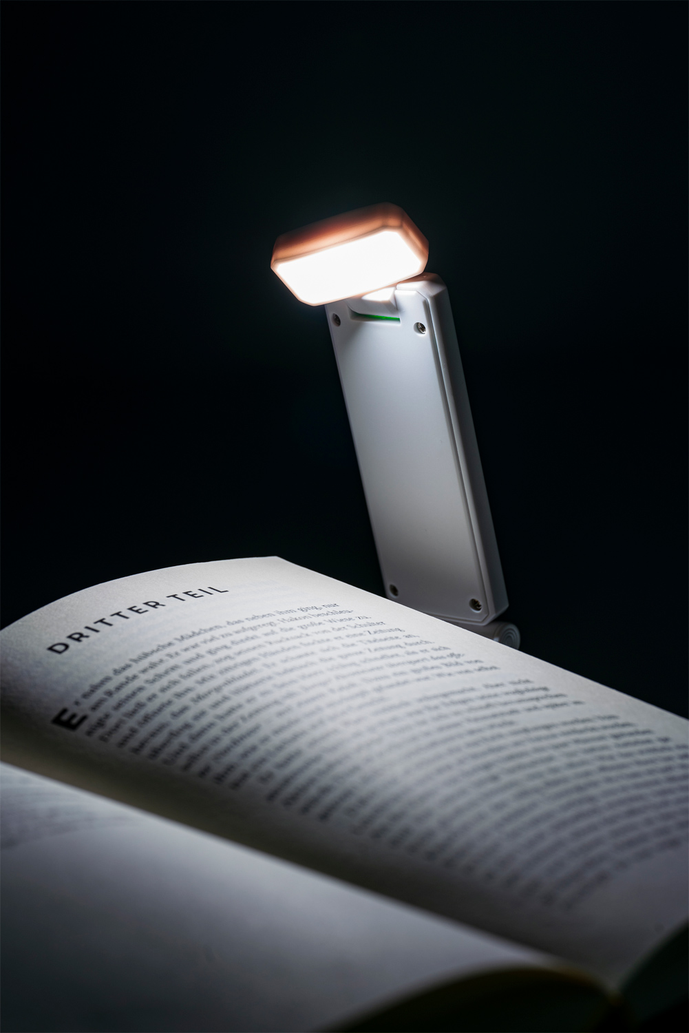Leseleuchte im Hosentaschenformat. 3 Lichttemperaturen: 3000/4000/6500K, 5 Dimmstufen, Timerfunktion, Batterie: 500mAh, Ladezeit: 1-2 Stunden, Leuchtdauer: 10-100 Stunden.