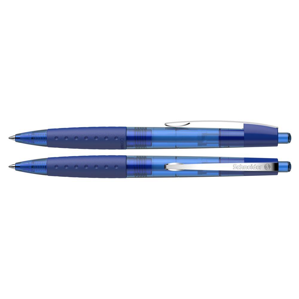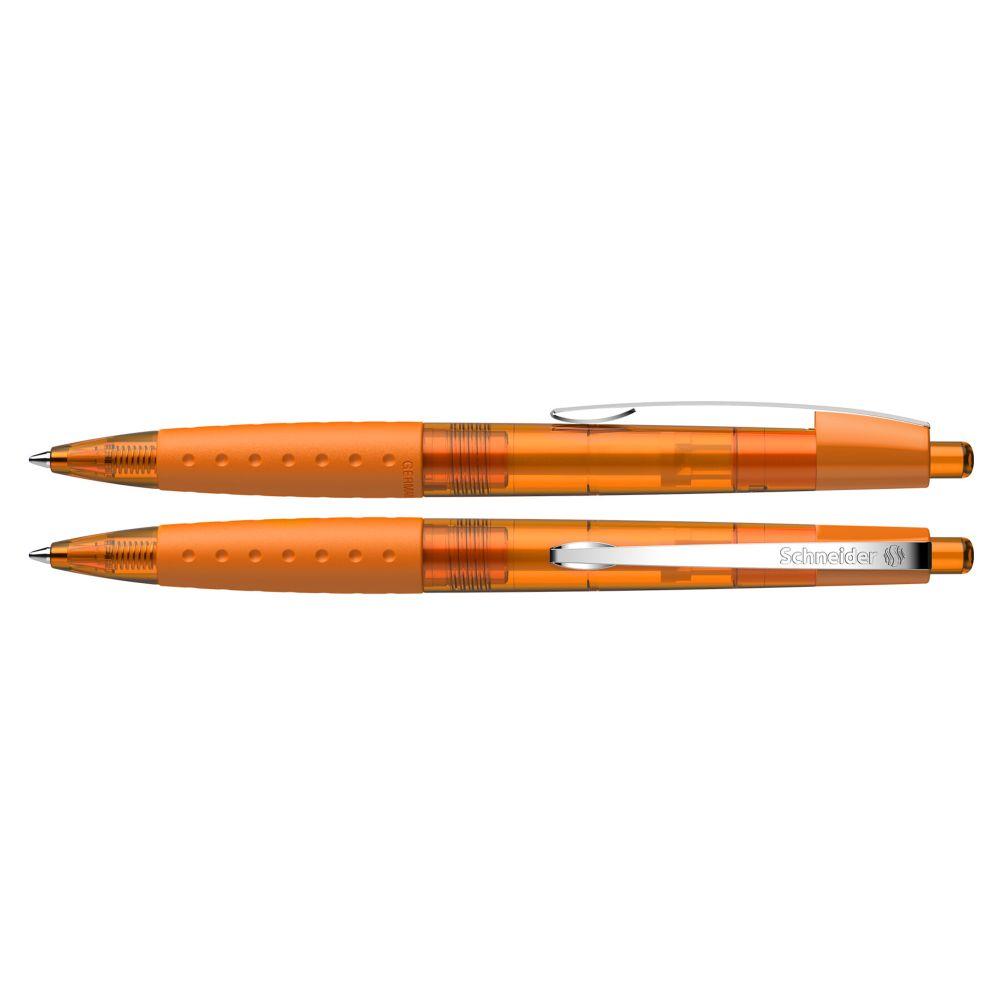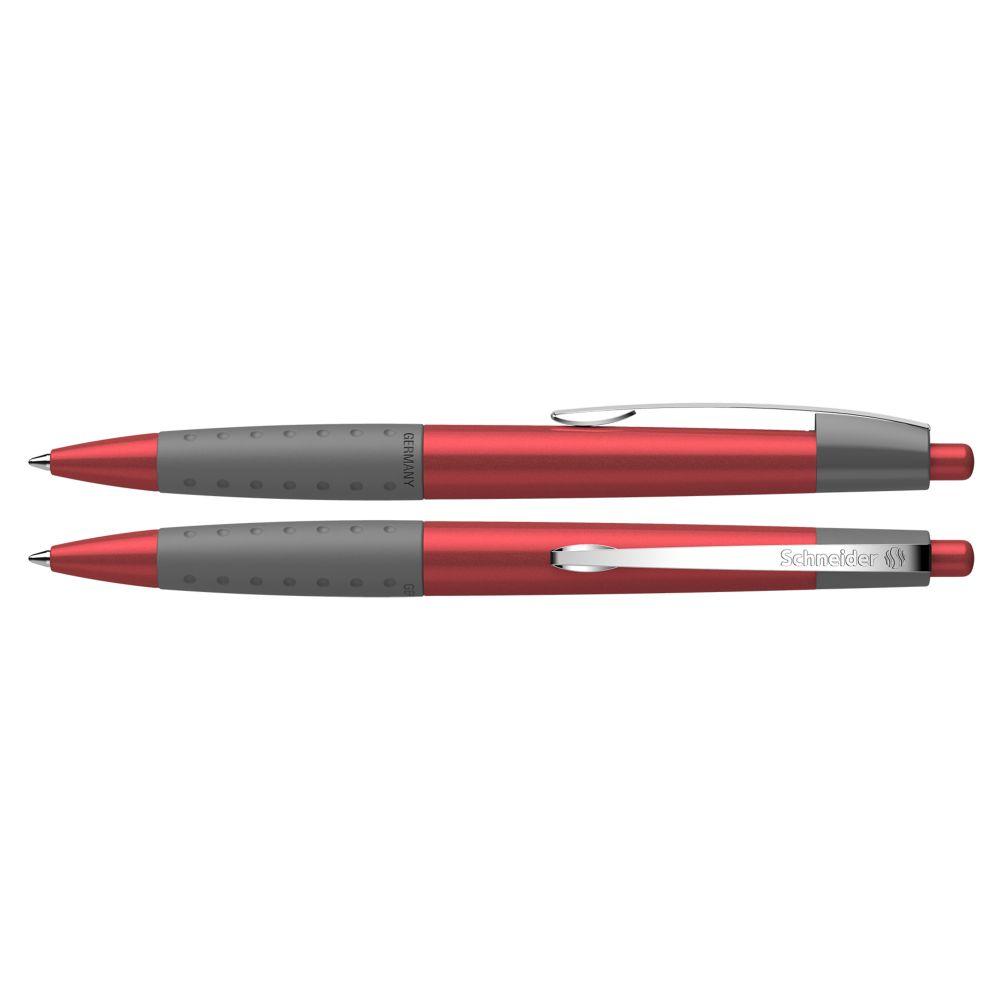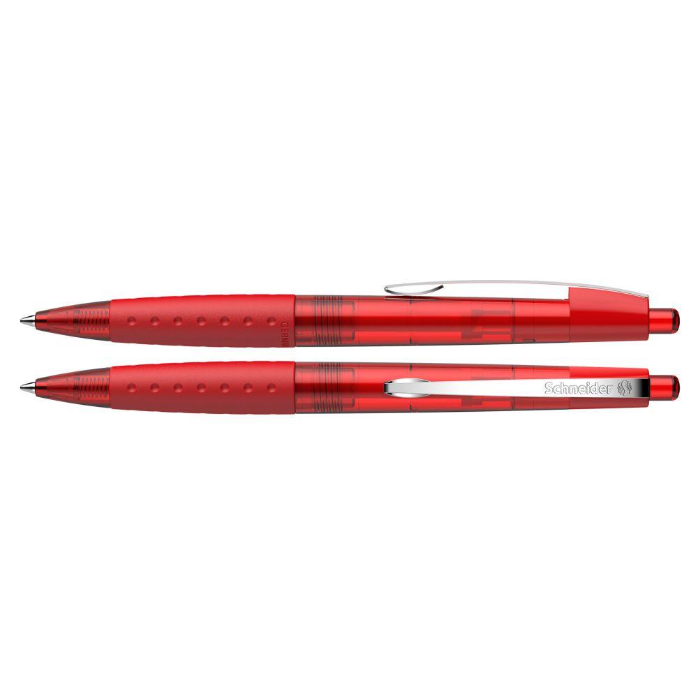 Druckkugelschreiber aus transparentem, opakem oder metallischem Kunststoff mit glänzender Oberfläche. Rutschfest gummierte Griffzone und Clip aus stabilem Edelstahl. Ausgestattet mit Schneider-Mine 774 M. Produkt mit finanziellem Klimabeitrag: Kompensation in Höhe der unvermeidbaren Emissionen in ein zertifiziertes Klimaschutzprojekt. Gehäuse: rot-transparent. Schreibfarbe: blau.