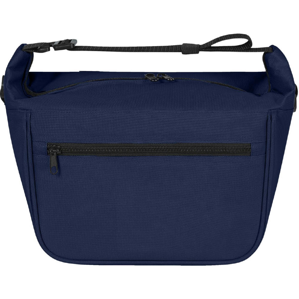 moderne Kühltasche; Hauptfach mit 2-Wege-Reißverschluss; großzügige Polsterung; innen abwaschbar; einseitig lösbarer, längenverstellbarer Träger mit Gummilasche zur Gurtfixierung; beidseitig D-Ringe zu Befestigung z.B.: für optionalen Schultergurt* oder Schlüssel; Bodenfüße; rückseitig Schlaufen zur Befestigung am Fahrradlenker
