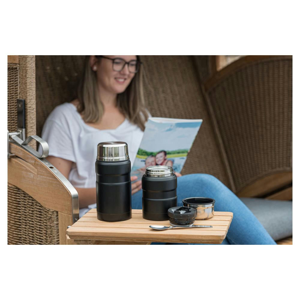 Eine warme Suppe in der Mittagspause, ein leckerer Eintopf während einer Wanderung, oder ein Porridge zum Frühstück in der Bahn – mit unserem Lunchpot „travel“ ist all dies kein Problem. Der doppelwandige und vakuumisolierte Food-Container aus Edelstahl hält die Temperatur im Inneren konstant, sodass Warmes warm und Kaltes kalt bleibt. Der Lunchpot ist von Außen pulverbeschichtet; Farbe schwarz matt – im Inneren des Deckels befindet sich ein faltbarer Löffel. Der Lunchpot ist auslaufsicher, nachhaltig, BPA-frei, robust, spülmaschinengeeignet (Deckel nicht) und wird in einem Einzelkarton geliefert.