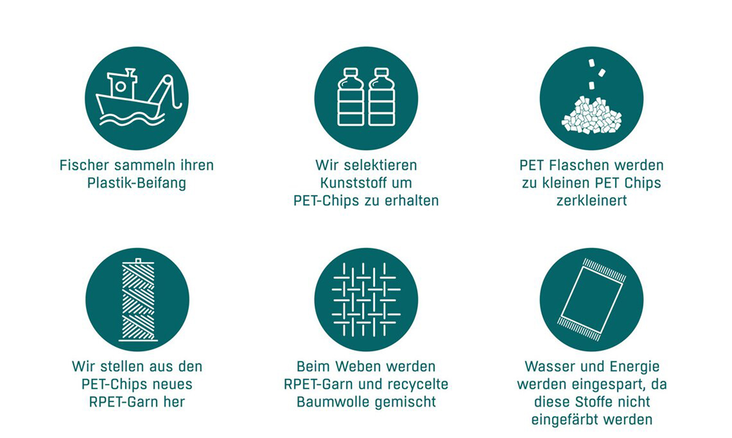 Plastik zerstört unsere Ozeane wie nie zuvor. Mit diesem Handtuch helfen Sie, die Ozeane vom Plastik zu befreien. Gemeinsam mit einem Netzwerk von Fischern wird der Plastik-Beifang gesammelt, so dass dieser Beifang als RPET-Garne verarbeitet werden kann. Diese Garne werden mit recycelter Baumwolle kombiniert. So entsteht ein 100 % recyceltes Handtuch.Zudem wird beim Kauf von Seatowel 5 % des Gewinns an das Projekt "The Ocean Cleanup" spendiert.
