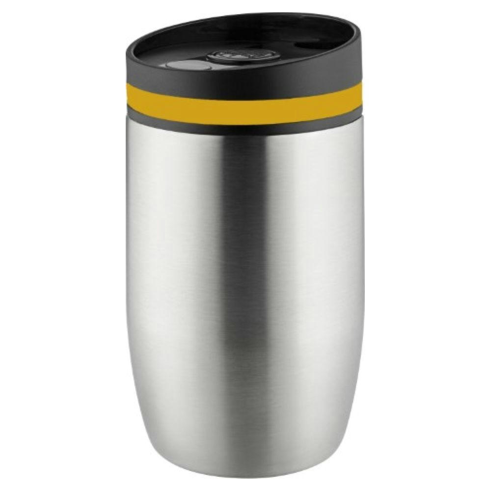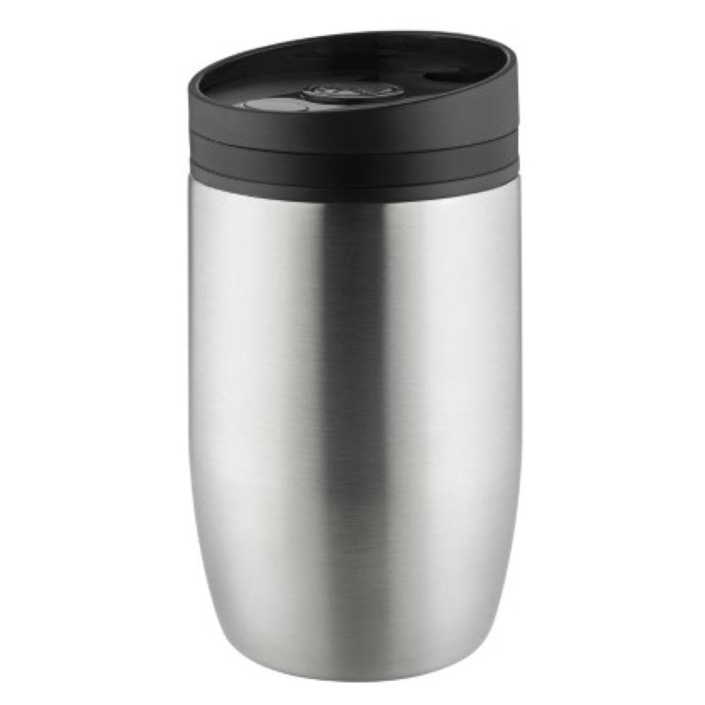 Trendiger Refill Thermobecher für das Office, unter der Kaffeemaschine, Zuhause oder das Auto/Mobil - doppelwandige Qualitätsstahlausführung, auslaufgeschützt und spülmaschinengeeignet zum Top attraktiven Preis. 300 ml, auslaufsicher, LFGB-Konform. VPE 25. Designbox