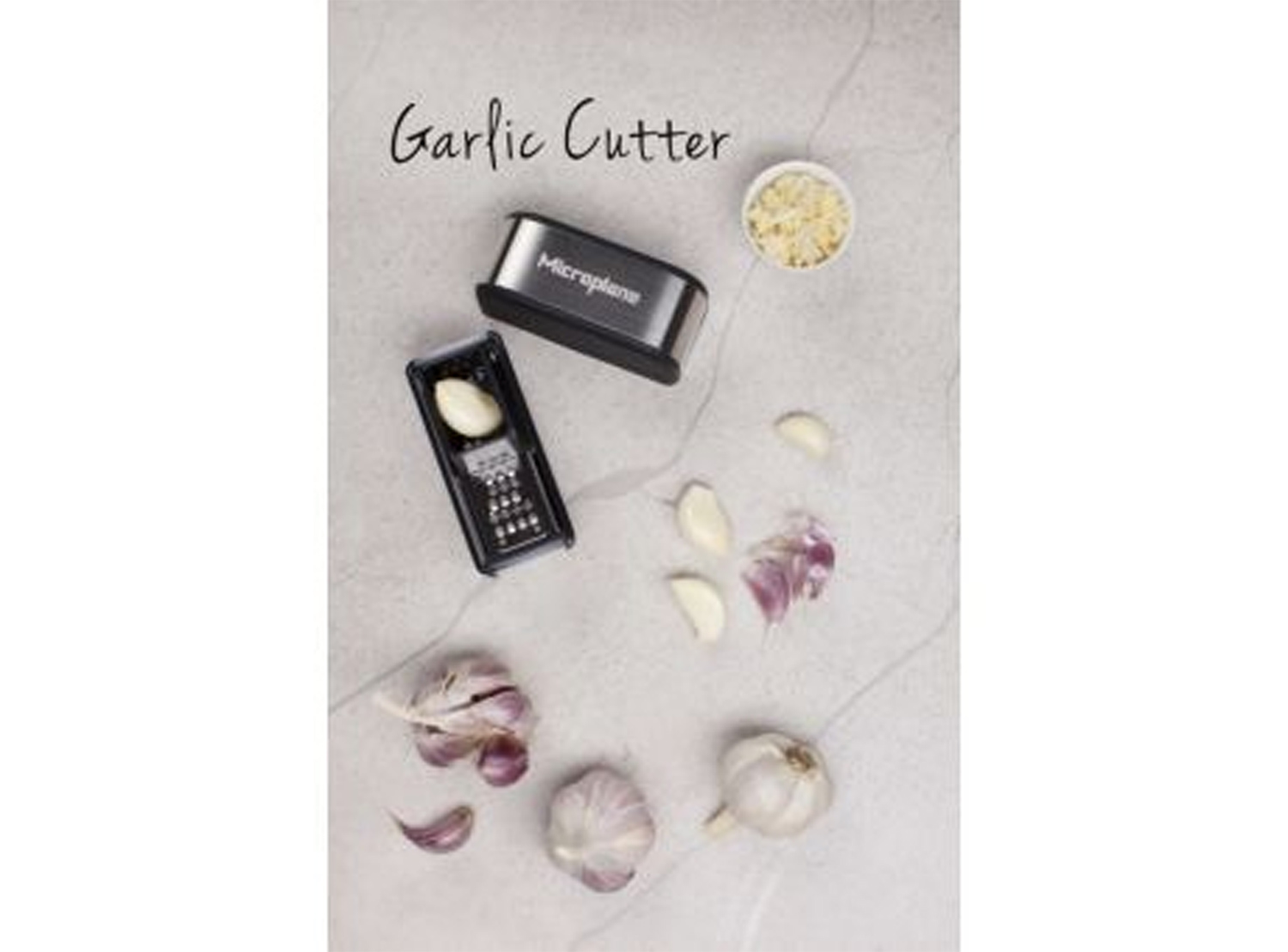 Der Microplane Knoblauchschneider - klein aber oho! Mit der photo-geätzten Edelstahlklinge - made in USA - schneiden Sie Knoblauch durch einfaches hin- und her bewegen präzise in kleine gleichmäßige Stücke, ohne ihn zu berühren. Dank der messerscharfen Klingen wird der Knoblauch exakt geschnitten und nicht zerdrückt, so dass sich die natürlichen Öle und Aromen optimal entfalten können. Mit Hilfe eines kleinen Schabers der sich im Deckel befindet, entfernen Sie anschließend den geschnitten Knoblauch aus dem Behälter.