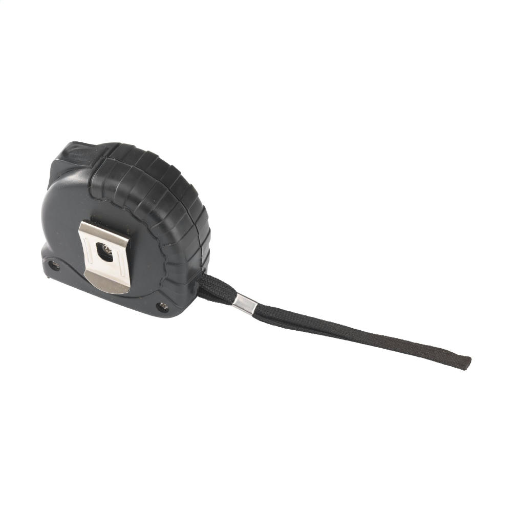WoW! Bandmaß aus recyceltem ABS-Kunststoff. Mit Hartstahlband (Bandbreite 19 mm), Anzeige in Zentimetern und Zoll, rutschfestem Gummigehäuse, Gürtelclip und Handschlaufe. Wird einzeln in einem Kraftkarton geliefert.