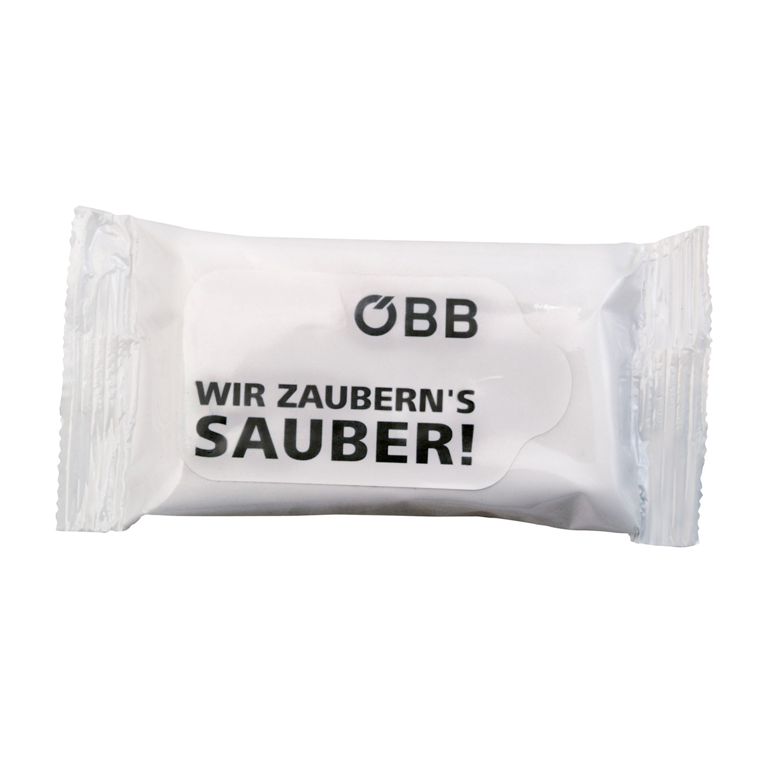 10 Feuchttücher, verpackt in Flow-Pack Folie in weiß. Duftrichtungen: Dove, Cool Water, Mixed fruit.