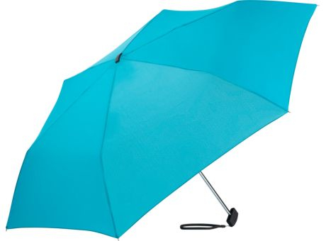 Ultraleichter Handöffner-Taschenschirm im praktischen Tragefutteral mit Karabinerhaken. Hochwertiges Windproof-PLUS-System für eine maximale Gestell-Flexibilität bei stärkeren Windböen, verchromter Stahlstock, extra leichter Bezug, flacher Soft-Touch-Griff mit Werbeanbringungsmöglichkeit, Tragefutteral mit praktischem Karabinerhaken zur Befestigung an Rucksack oder Tasche, handtaschentauglich durch extrem leichtes Gewicht, platzsparend durch superflache Ausführung