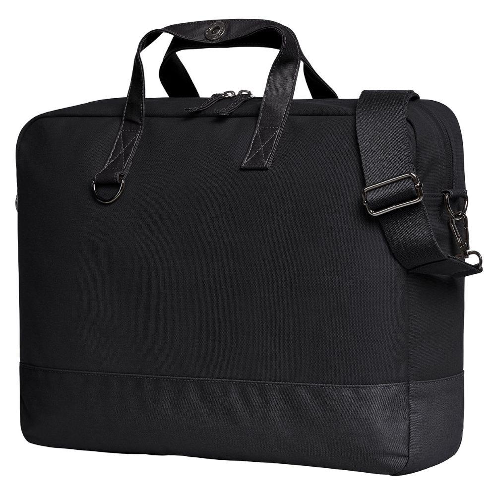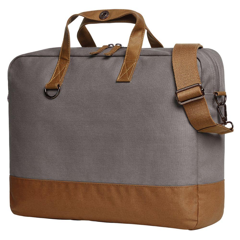 moderne, aufwändig verarbeitete Notebook-Tasche; liebevoll gestaltet mit wertigen Metall-Accessoires und beschichteten Baumwoll-Besätzen; großes 2-Wege-Reißverschluss Hauptfach; gepolstertes Notebookfach mit flachen Einsteckfächern und Stiftschlaufen; Reißverschluss-Innentasche; vor Zugriff geschütztes, rückseitiges Reißverschluss-Einsteckfach; Handgriffe mit Druckknopf; längenverstellbarer, abnehmbarer Baumwoll-Umhängegurt