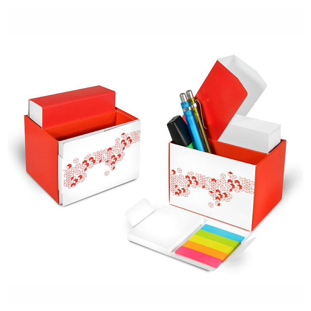 Der Office Organizer als All-in-one-Box. Handliche Box mit Platz für Ihre Büroutensilien, mit Zettelsatz, Haftnotiz und Markerset.