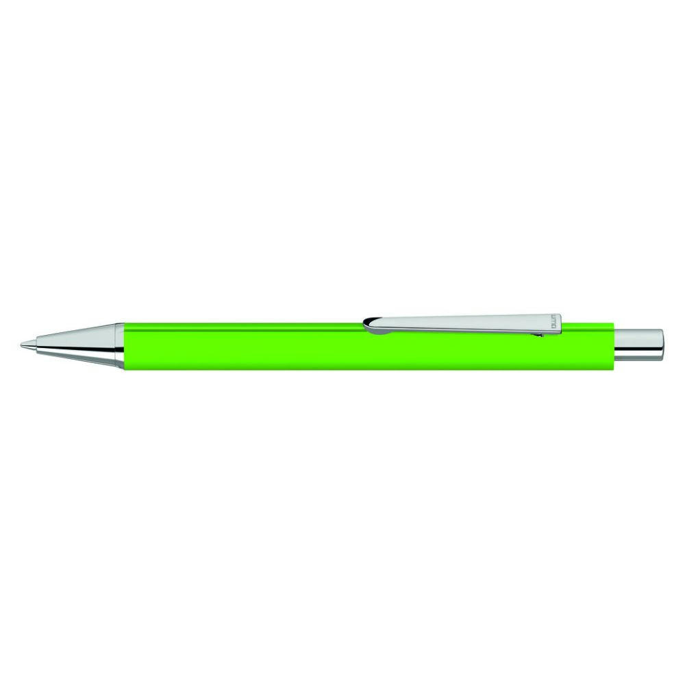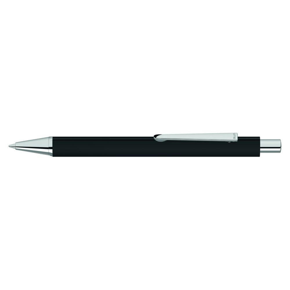 Metall-Druckkugelschreiber mit Softtouch-Dreikantgehäuse, Metallclip, Metallspitze und Drücker in silber glänzend.
