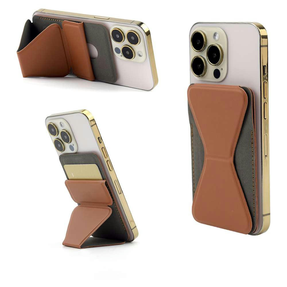 Haftet dank eines Magnets flach und passgenau auf der Rückseite des Smartphones. Der ausklappbare Tripod Handyständer kann sowohl senkrecht als auch waagerecht verwendet werden. Mit zusätzlichem Steckfach für eine Kreditkarte.