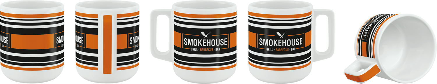 Transfer Druck als Teil- und Volldekor, Relief Weiß Druck (partiell erhabener Druck), Matt & Glanz Druck, Edelmetalldruck, Effektpigment Druck, Gravur, Hydrolack (farbige Lackierung), Softtouch, Personalisierung, Gastro Spritzung und Druck
