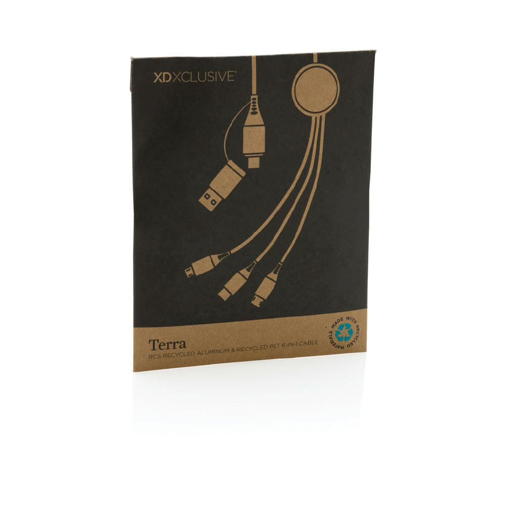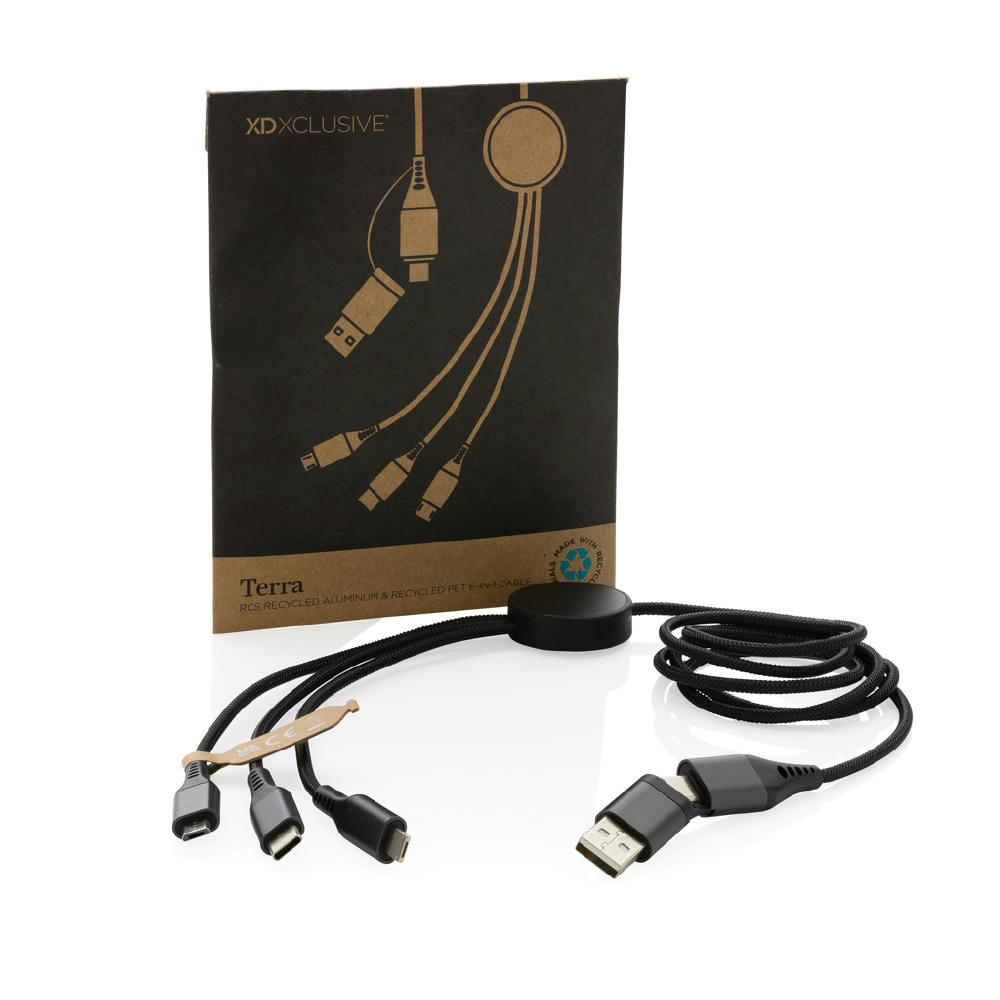 Ladekabel aus RCS (Recycled Claim Standard)-zertifiziert recyceltem Aluminium, recyceltem TPE und recyceltem PET. Gesamter Recyclinganteil: 65% basierend auf dem Gesamtgewicht des Artikels. Die RCS-Zertifizierung gewährleistet eine vollständig zertifizierte Lieferkette der recycelten Materialien. Aluminium verliert seine Eigenschaften im Recyclingprozess nicht und kann somit endlos recycelt werden. Mit dualem Input: USB-A und Type-C. Dreifacher Output: Apple Lightning/Micro und Type-C, bietet insgesamt 6 Ladeoptionen. Inklusive RCS-zertifiziertem, geflochtenem, recyceltem PET-Kabel mit einer Länge von 120cm. In Karton-Verpackung. Geeignet zum Aufladen, Synchronisieren und kompatibel mit CarPlay. Unterstützt schnelles Laden bis zu 9 V/2 A.