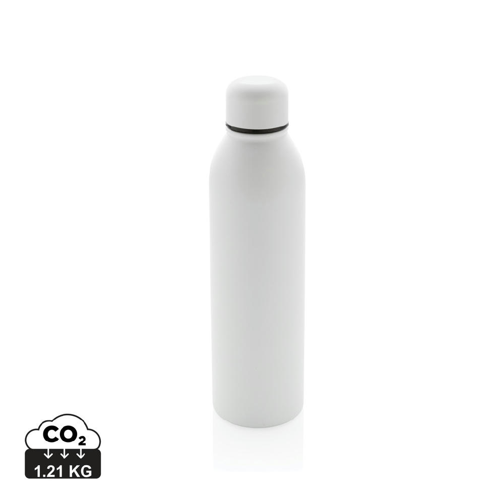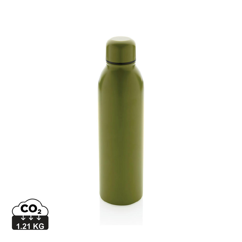 Diese RCS Recycelte Edelstahl-Vakuumflasche ist für langanhaltenden Genuss Ihrer Getränke konzipiert! Die doppelwandige Vakuumkonstruktion aus recyceltem Stainless Steel hält Ihre Getränke 15 Stunden gekühlt oder 5 Stunden warm. Diese Flasche passt in die meisten Standard-Getränkehalter im Auto, sodass Sie sie überall hin mitnehmen können. Hergestellt aus RCS (Recycled Claim Standard)-zertifiziert recycelten Materialien. Die RCS-Zertifizierung gewährleistet eine vollständig zertifizierte Lieferkette der recycelten Materialien. Gesamter Recyclinganteil: 90% basierend auf dem Gesamtgewicht des Artikels. BPA-frei. Fassungsvermögen 500ml.