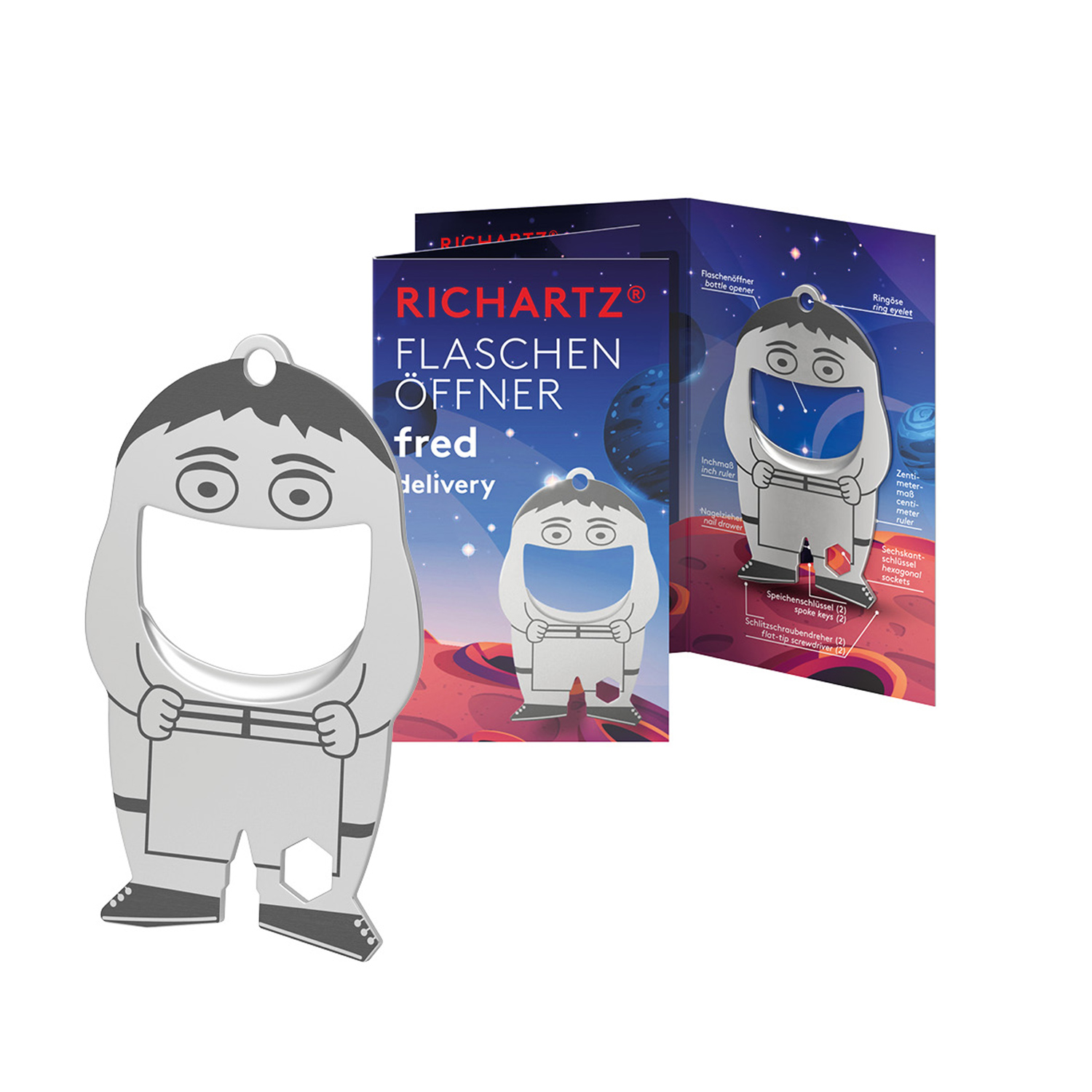 Der sympathische Flaschenöffner überzeugt durch seine schöne, kompakte Form und passt daher an jeden Schlüsselbund. Sein perfekt konstruierter Flaschenöffner löst problemlos jeden Kronkorken und mit 9 weiteren nützlichen Funktionen wird er schnell zum unverzichtbaren Begleiter im Alltag. FLASCHENÖFFNER von RICHARTZ®: So praktisch und immer dabei!
