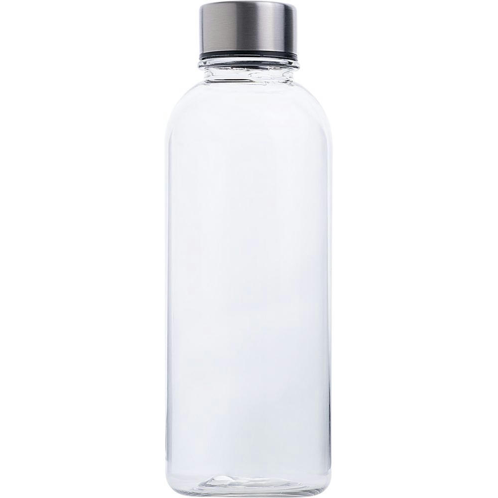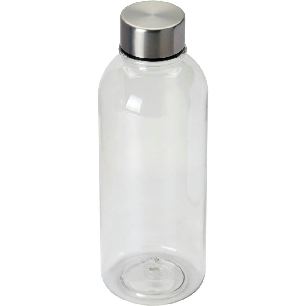 Flasche aus recyceltem PET mit Edelstahlverschluss.