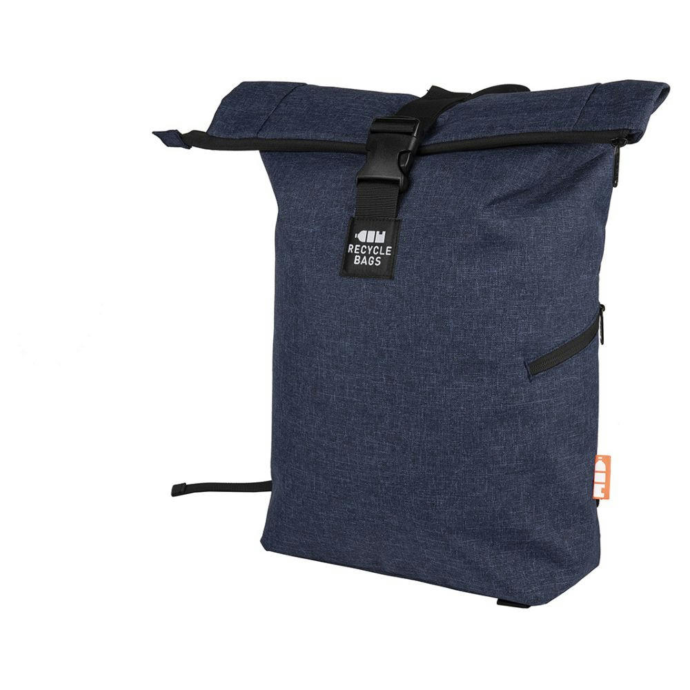 Der RB Rucksack ist ein stilvoller und praktischer Rucksack mit einem einfachen Rolltop-Verschluss. Die große Öffnung ermöglicht es Ihnen, Dinge wie Bücher, Dokumente, (Sport-) Kleidung oder andere Dinge, die Sie unterwegs benötigen, schnell und einfach zu finden. Sie können Ihren Laptop oder Ihr Tablet in das spezielle Laptopfach stecken, dass durch die gepolsterte Rückwand geschützt ist. Kleinere Gegenstände können in der seitlichen Reißverschlusstasche aufbewahrt werden. Sowohl der hochwertige, zweifarbige Stoff, als auch das Futter, das Reißverschlussband und der gewebte Gurt werden aus recycelten PET-Flaschen hergestellt.